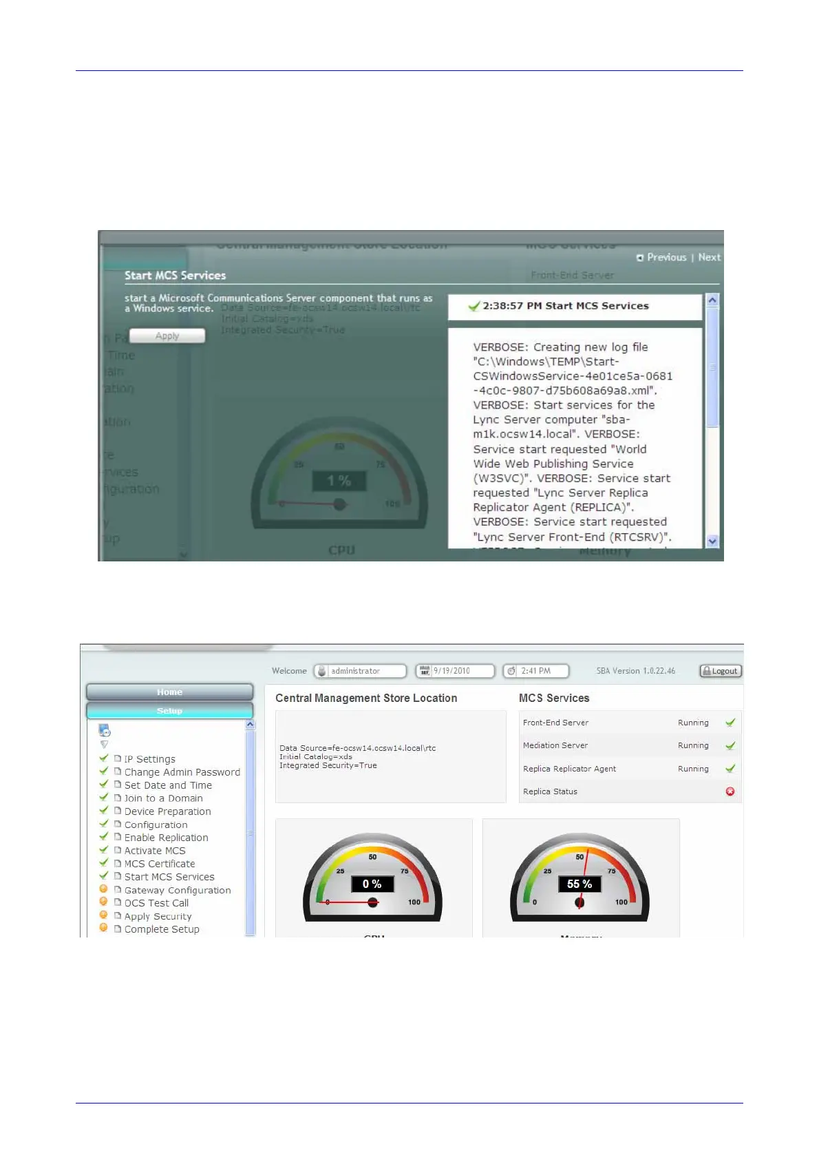 1. On the Setup menu, click Start MCS Services; the following screen appears.