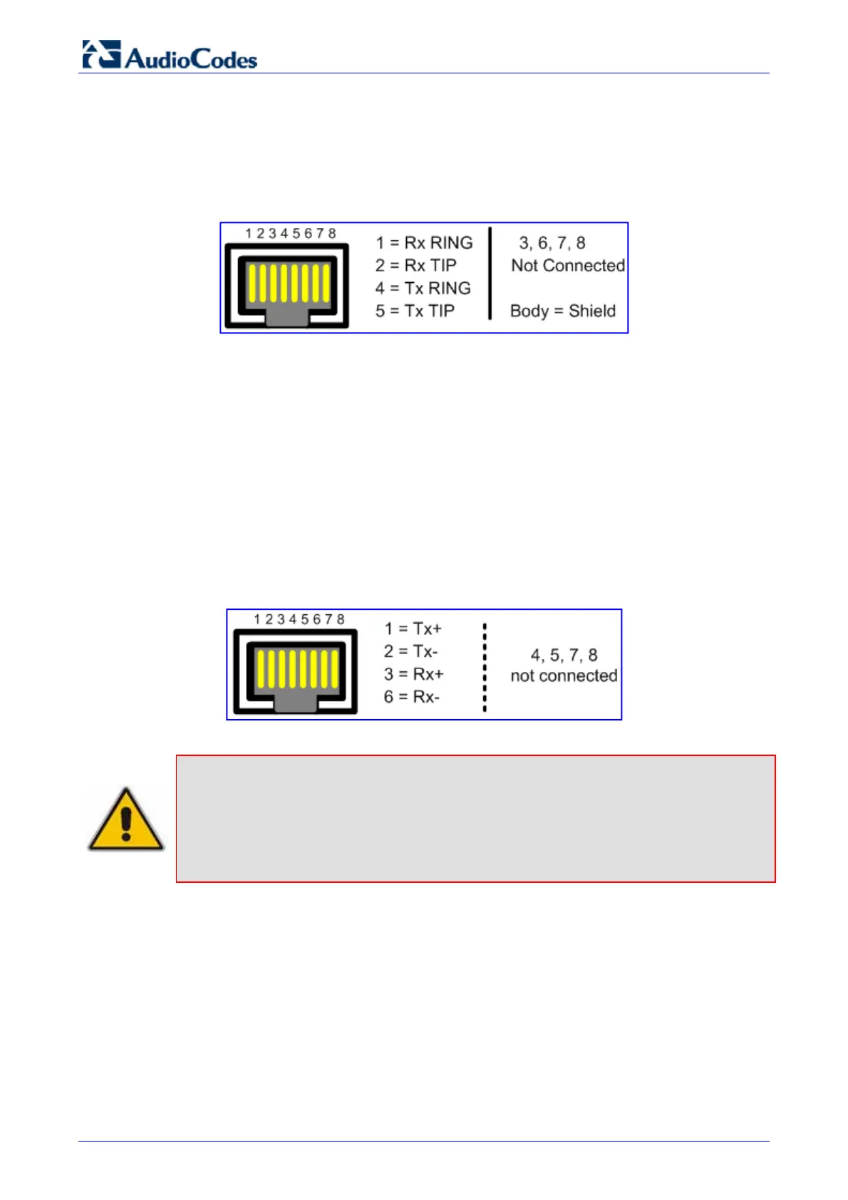 RJ-48c trunk connectors are wired according to the connector pinouts shown in the figure below: