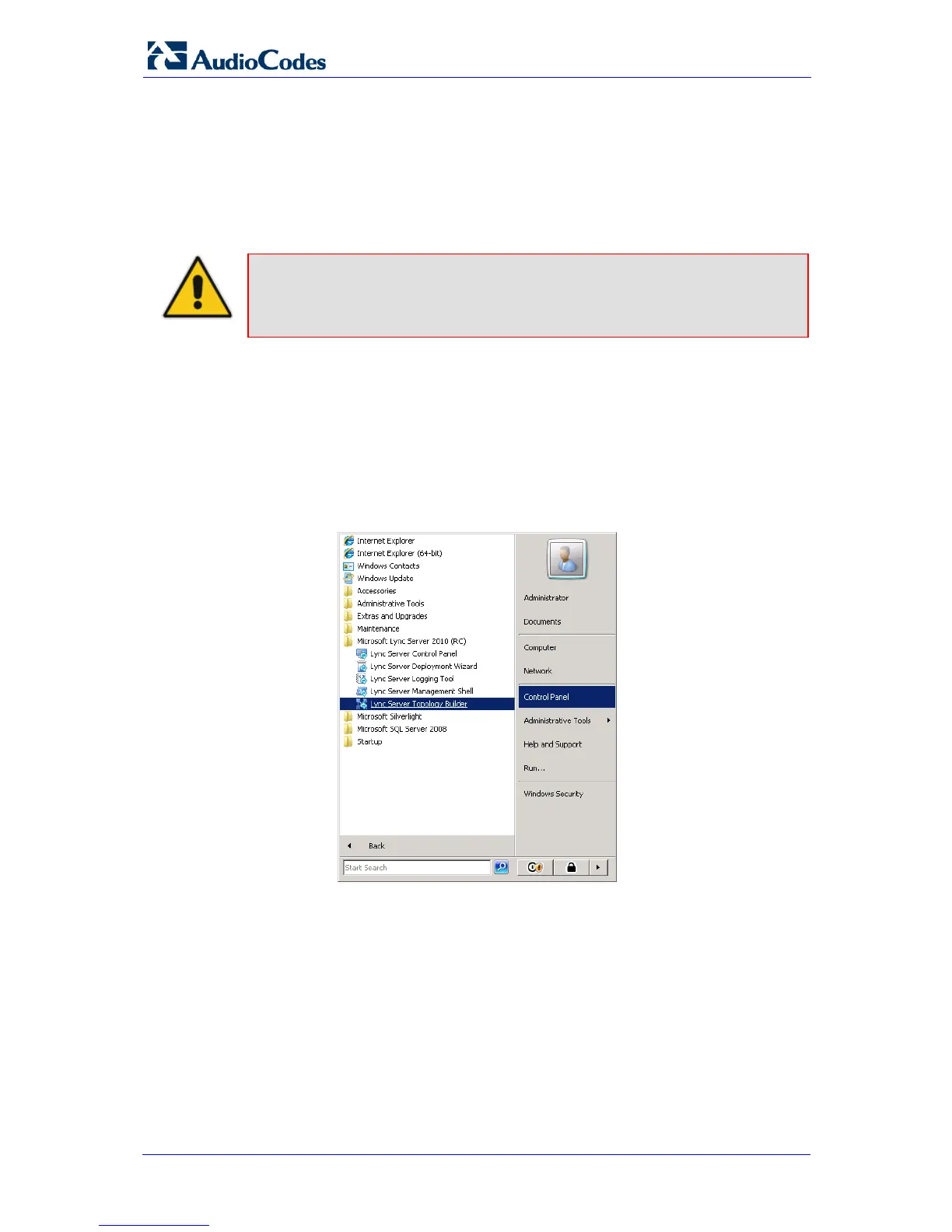 1. On the server where the Topology Builder is located, start the Microsoft Lync