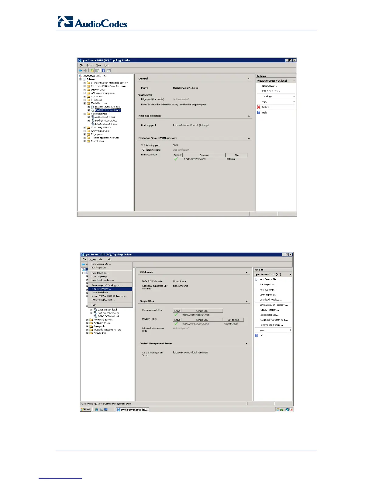 4. In the Lync Server main menu, choose Action > Publish Topology.
