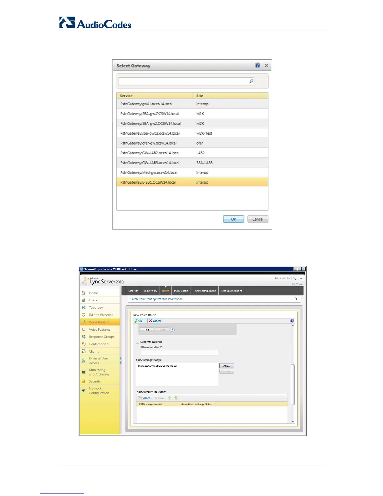 9. Select the IP/PSTN Gateway you created above and click OK.