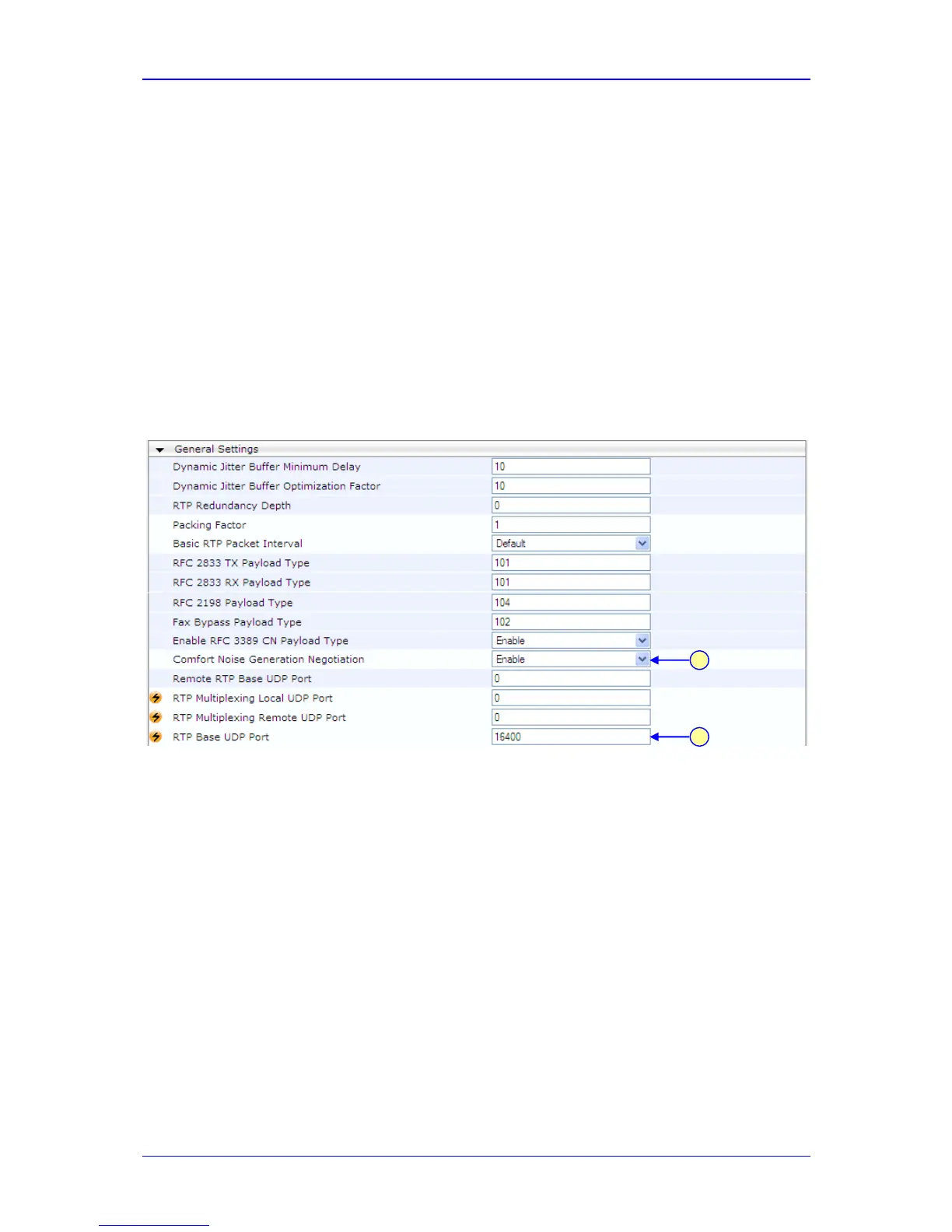 4. Default ‘RTP Base UDP Port’ is ‘6000’. As seen here, it is set to ‘16400’ to
