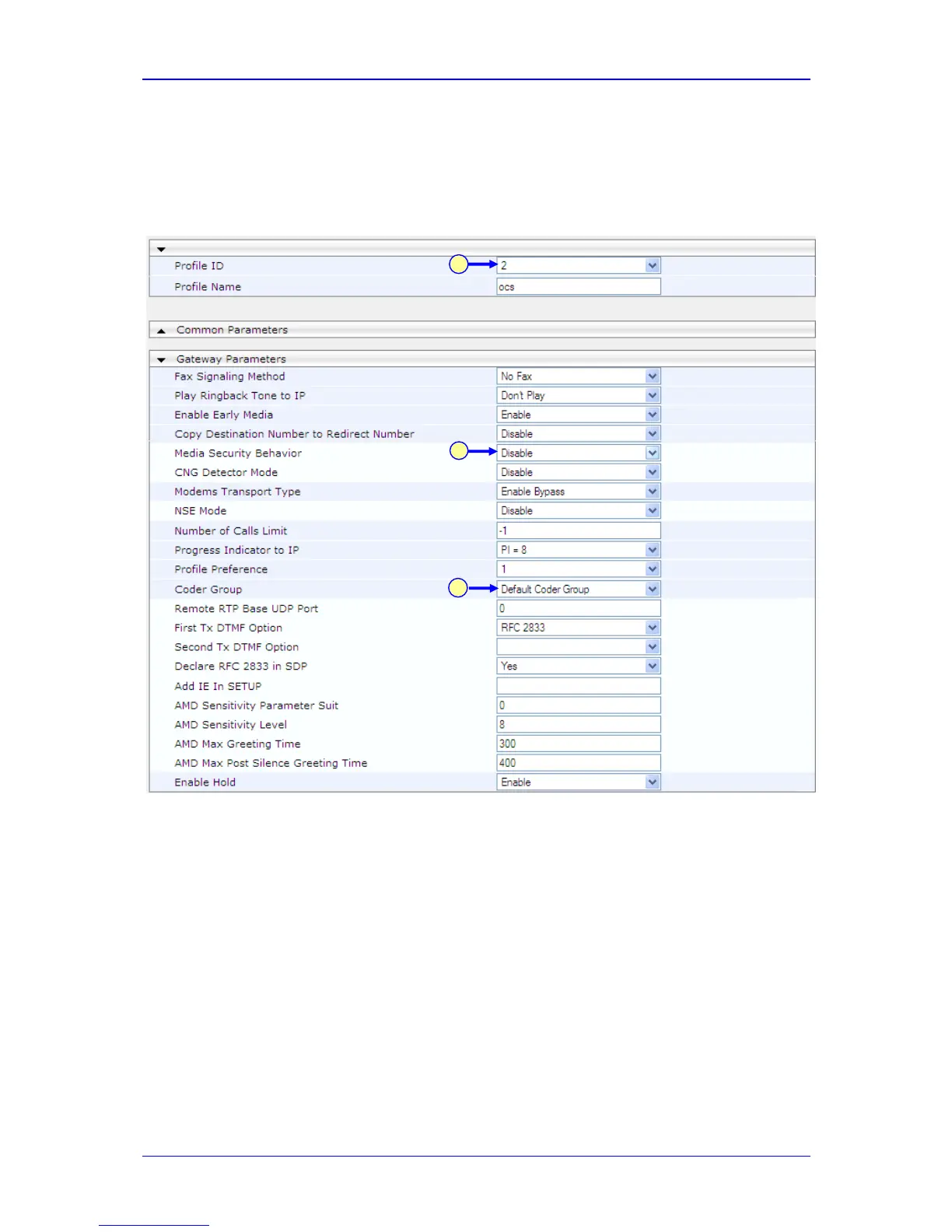 ¾ To configure IP Profile settings for LYNC Mediation Server: