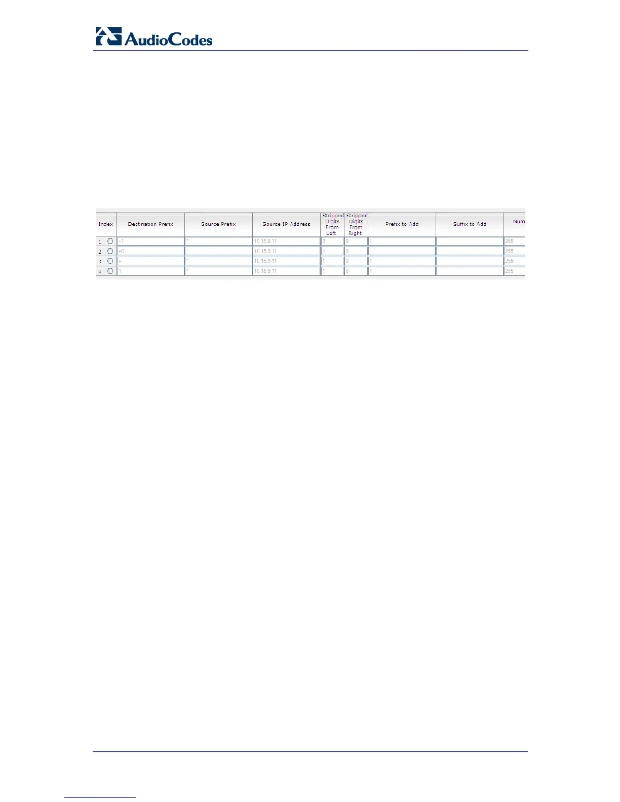 • Index #2 defines destination number manipulation of IP calls from Lync