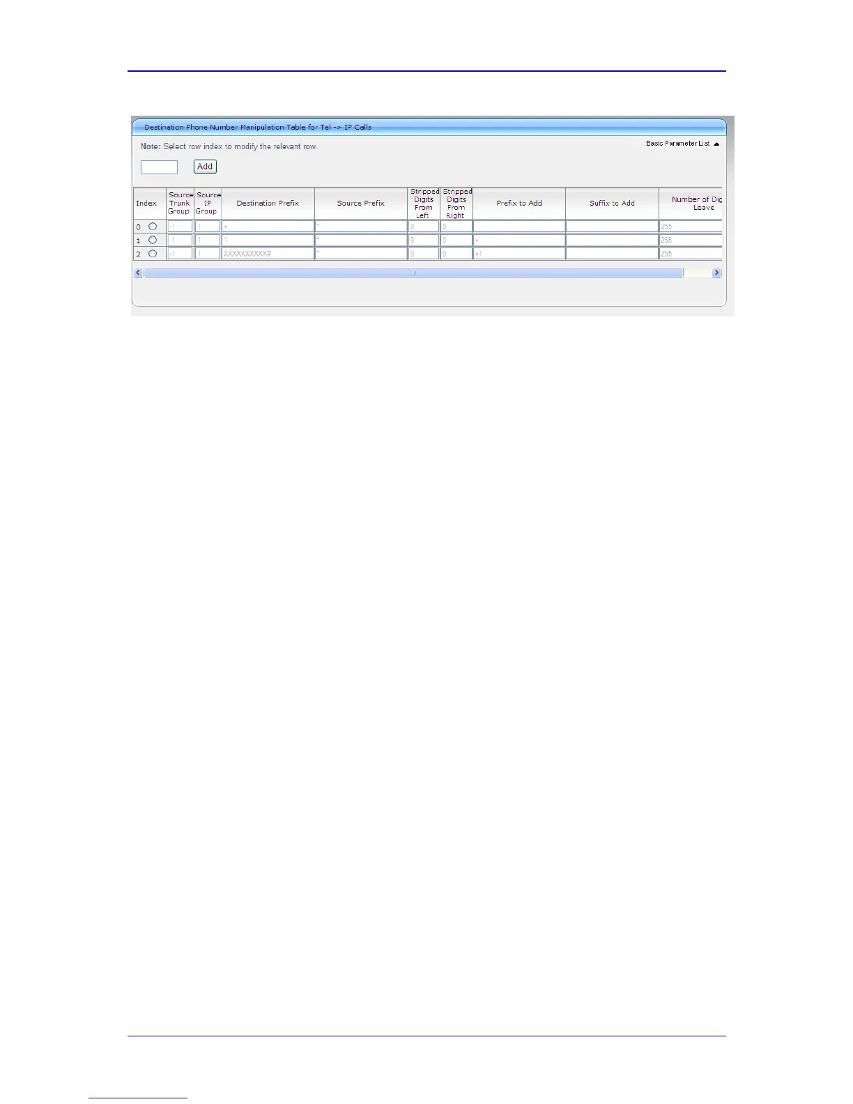 • Index #0 defines destination number manipulation of IP calls from PAETEC