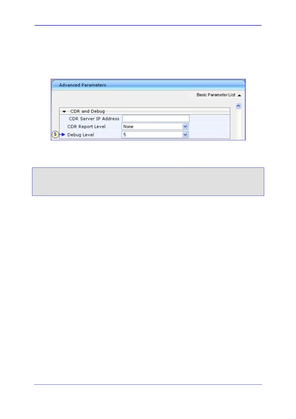 5. From the 'Debug Level' drop-down list, select '5' if debug traces are required.