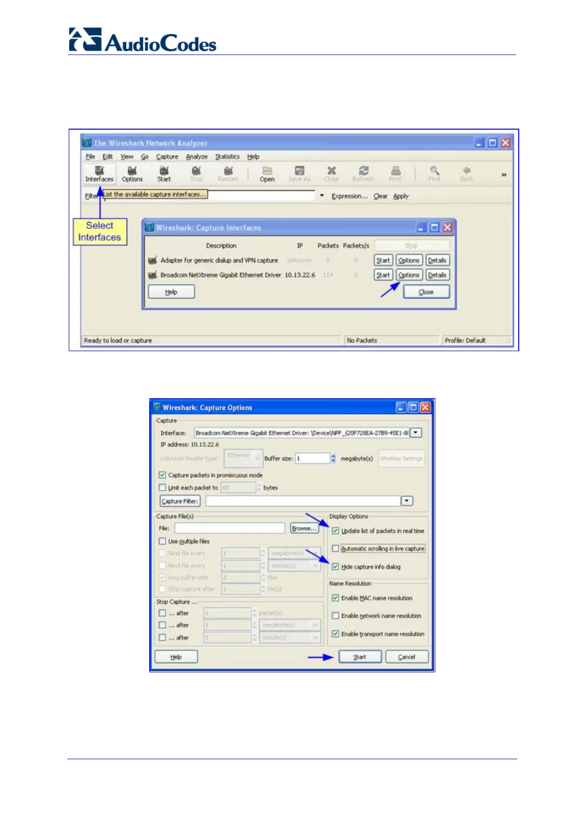 click Interfaces, and then in the 'Capture Interfaces' dialog box, click the Options