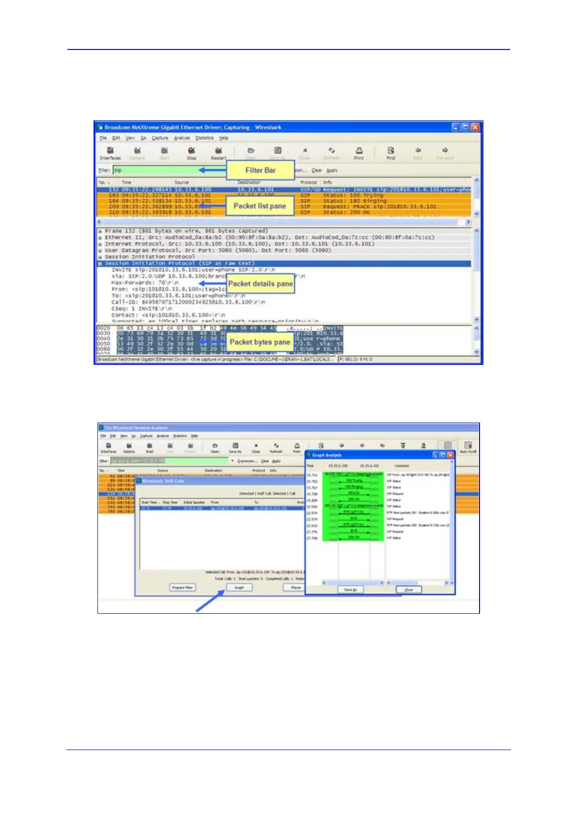 8. To view VoIP call flows, from the Statistics menu, choose VoIP Calls. You can view