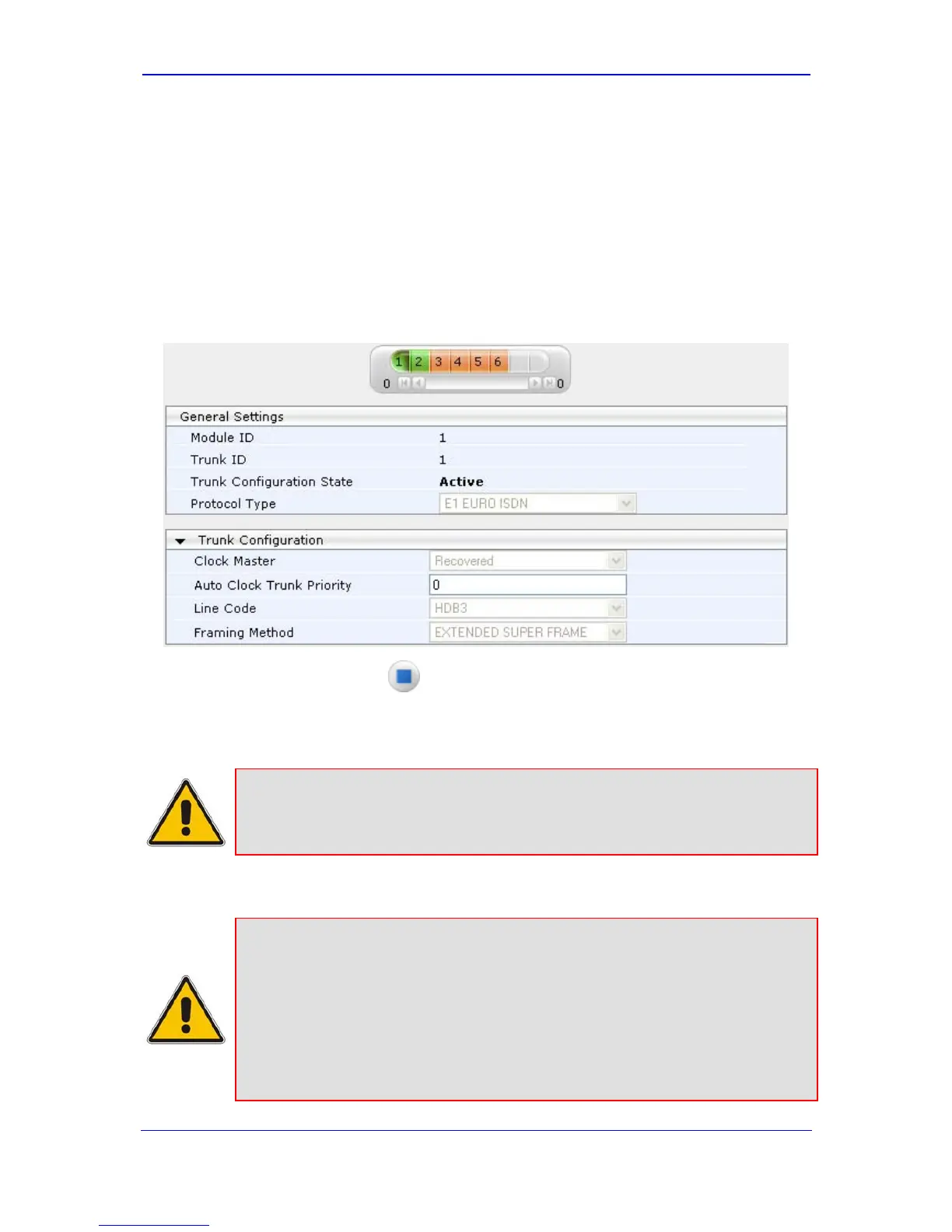 Note: You cannot stop a trunk if it provides the device’s clock (assuming the device