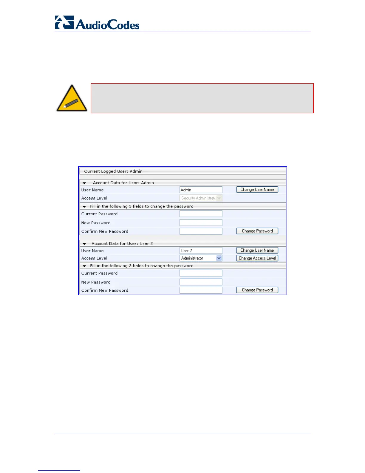 To prevent unauthorized access to the Web interface, two Web user accounts (login