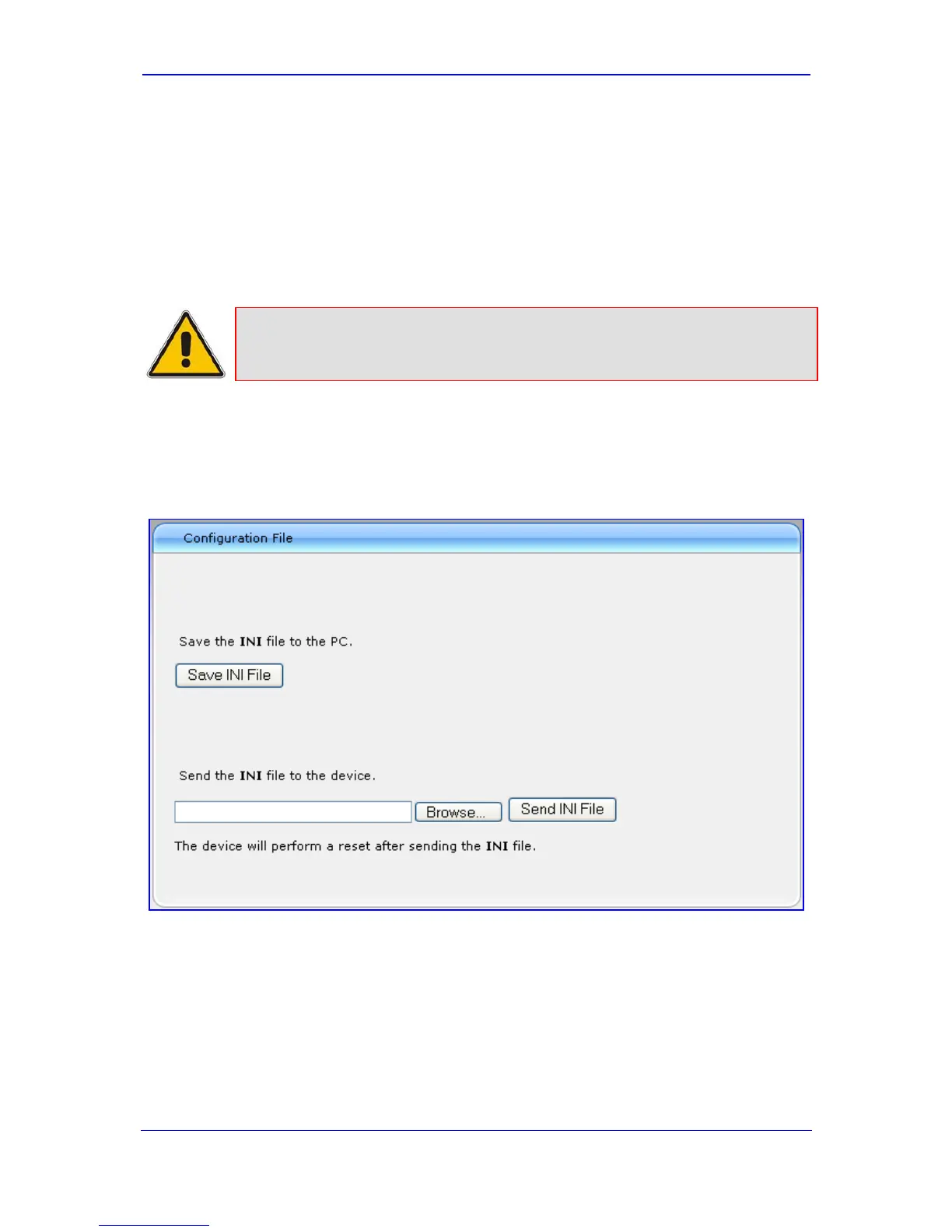 'Configuration File' page also allows you to load an ini file to the device. If the device has
