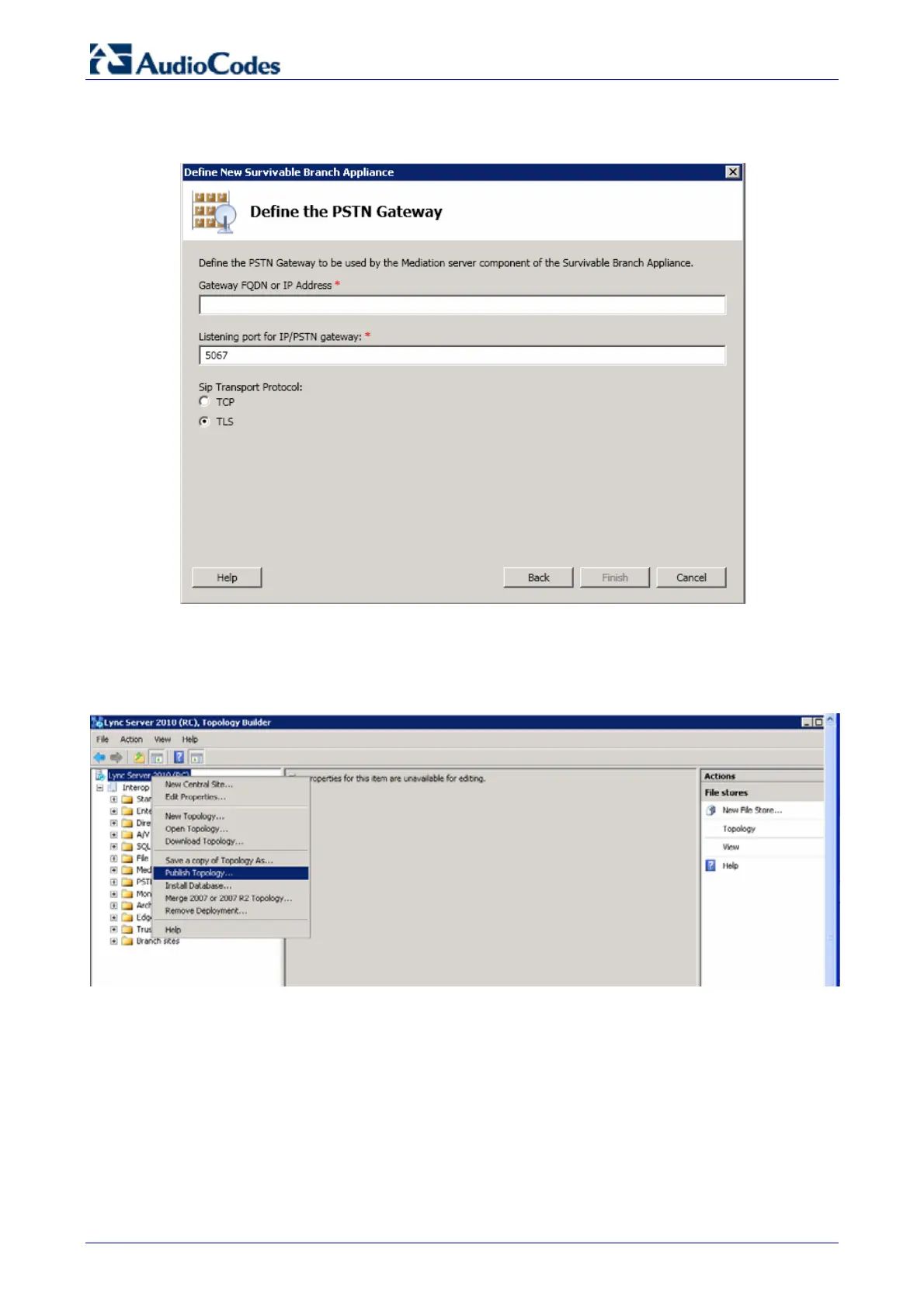 13. Publish the new topology by right-clicking on the root of the Lync Server 2010 (RC) menu