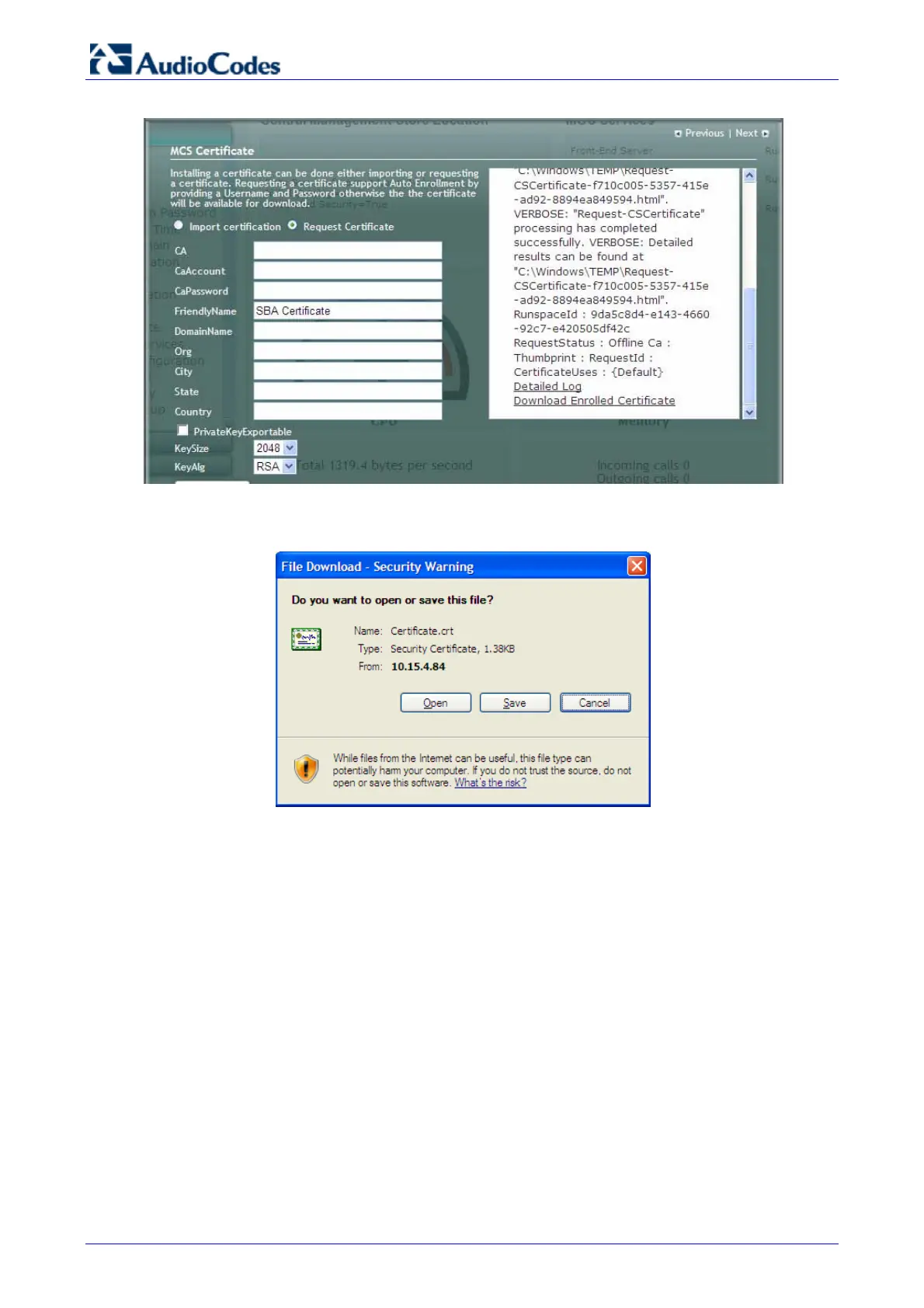 Figure 6-64: MCS Certificate – Download Enrolled Certificate