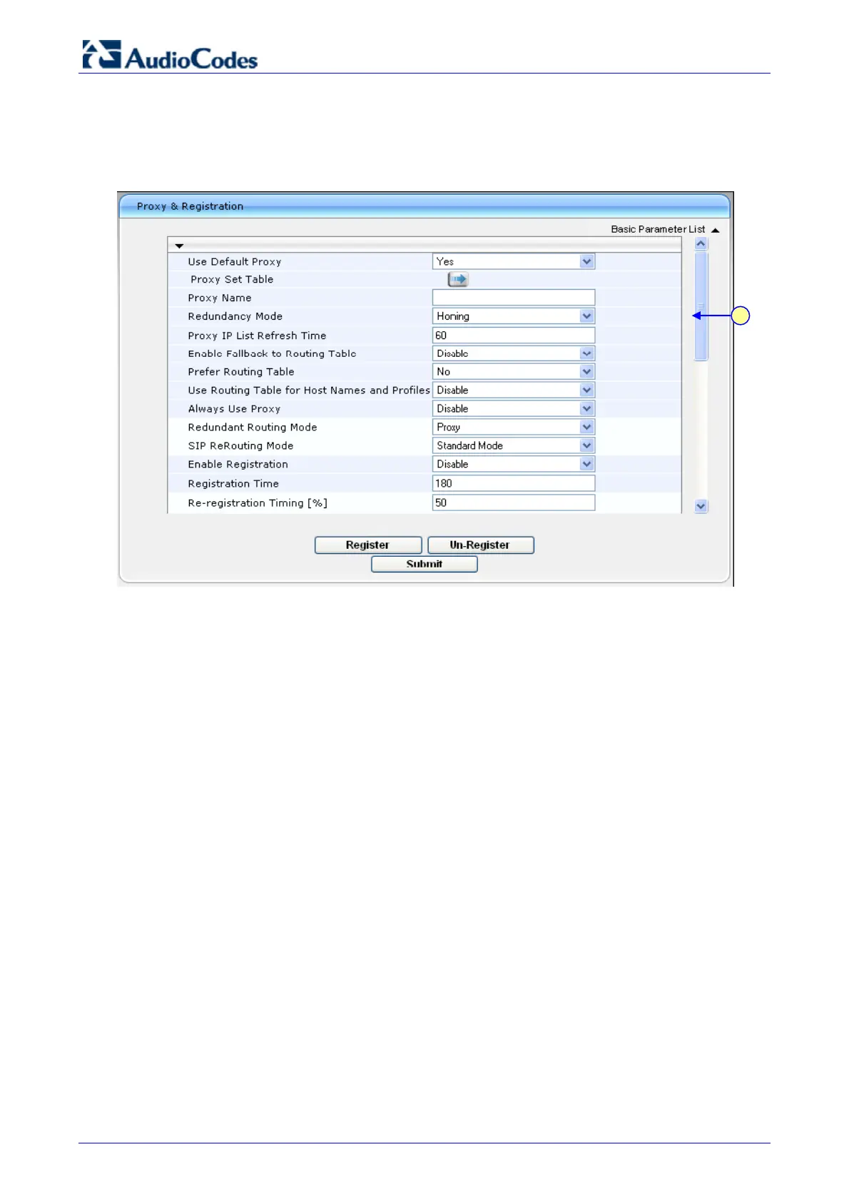 > Proxies/IpGroups/Registration submenu > Proxy & Registration), and configure the