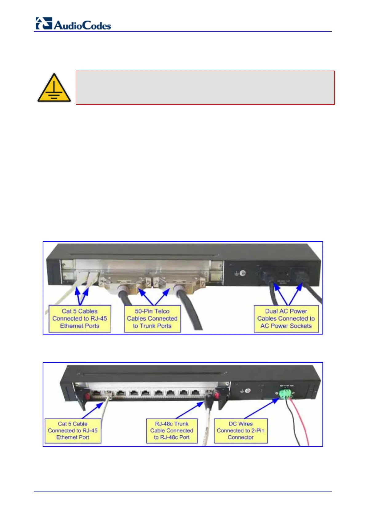 2. Connect the E1/T1 trunk interfaces (refer to 'Connecting the E1/T1 Trunk Interfaces' on page