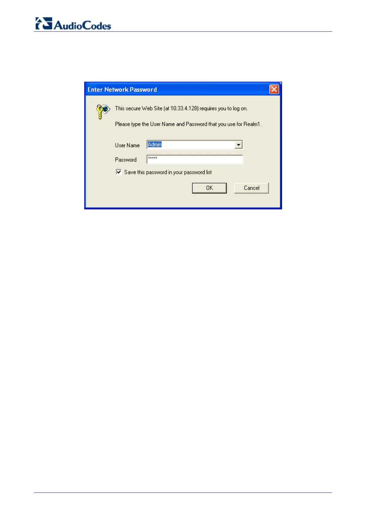 b. Enter the device's default login, case-sensitive user name ('Admin') and password