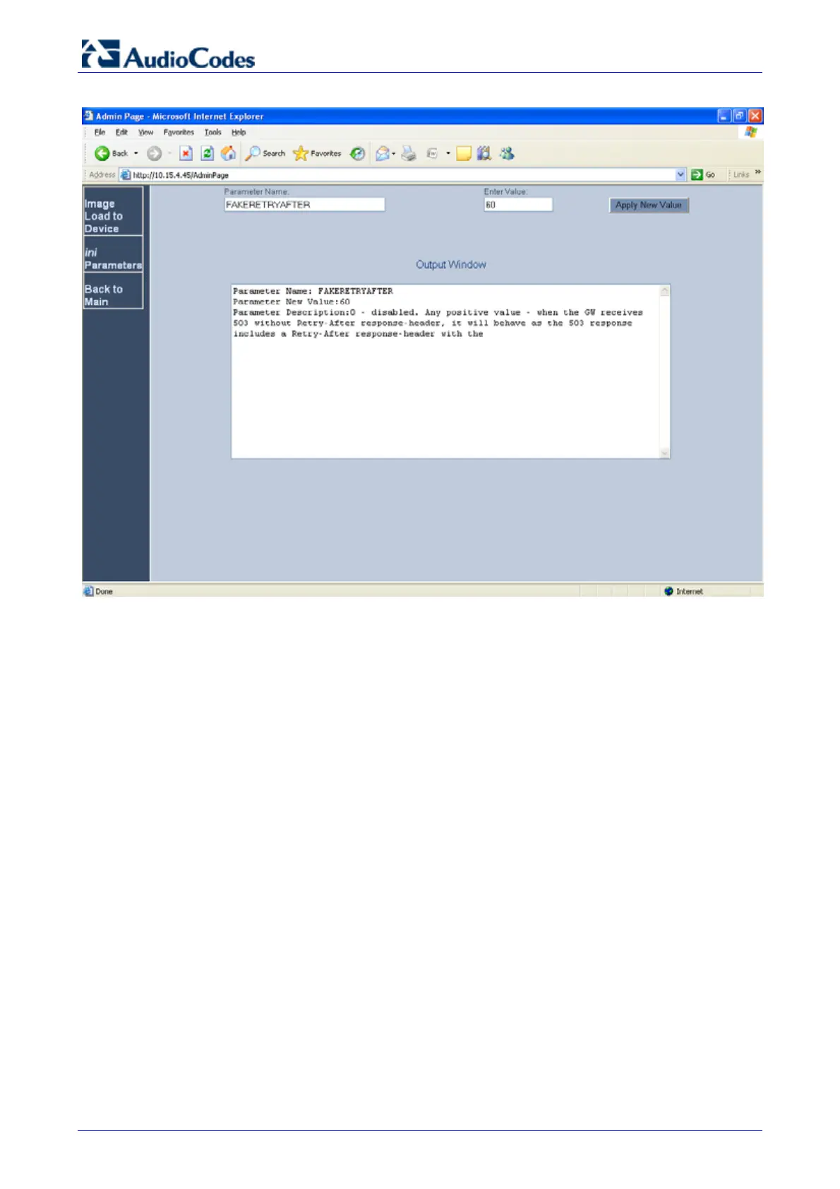 6. In the 'Parameter Name' field, enter the parameter FakeRetryAfter. When the Gateway