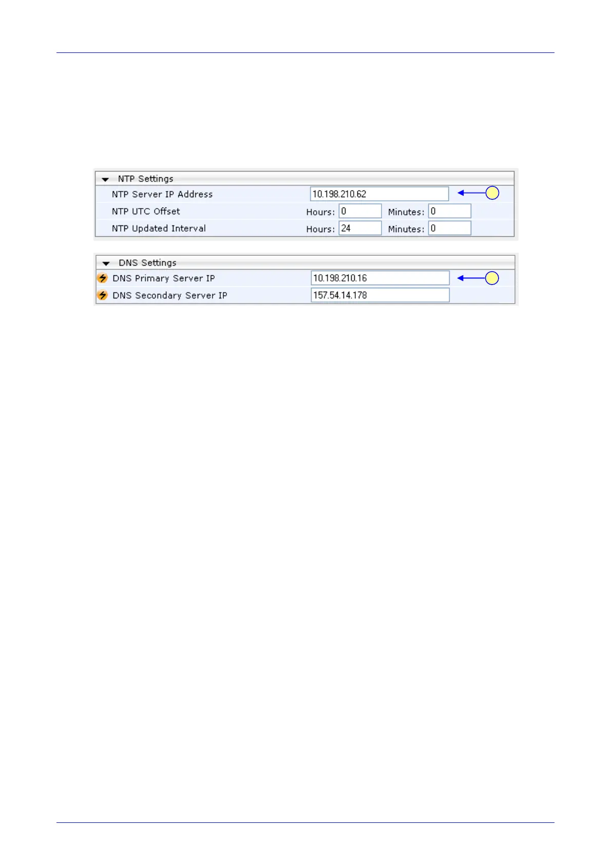 The procedure below configures the NTP Server IP address or FQDN and the Domain Name