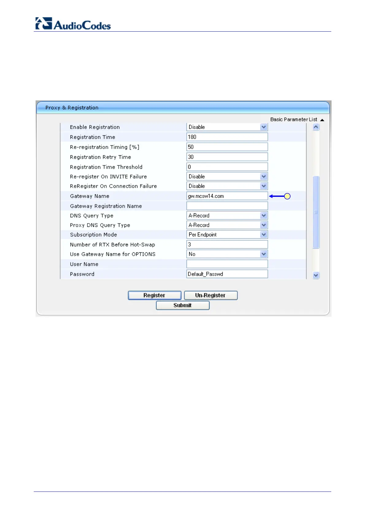 2. In the ‘Gateway Name’ field, assign a unique FQDN name to the Media Gateway within the