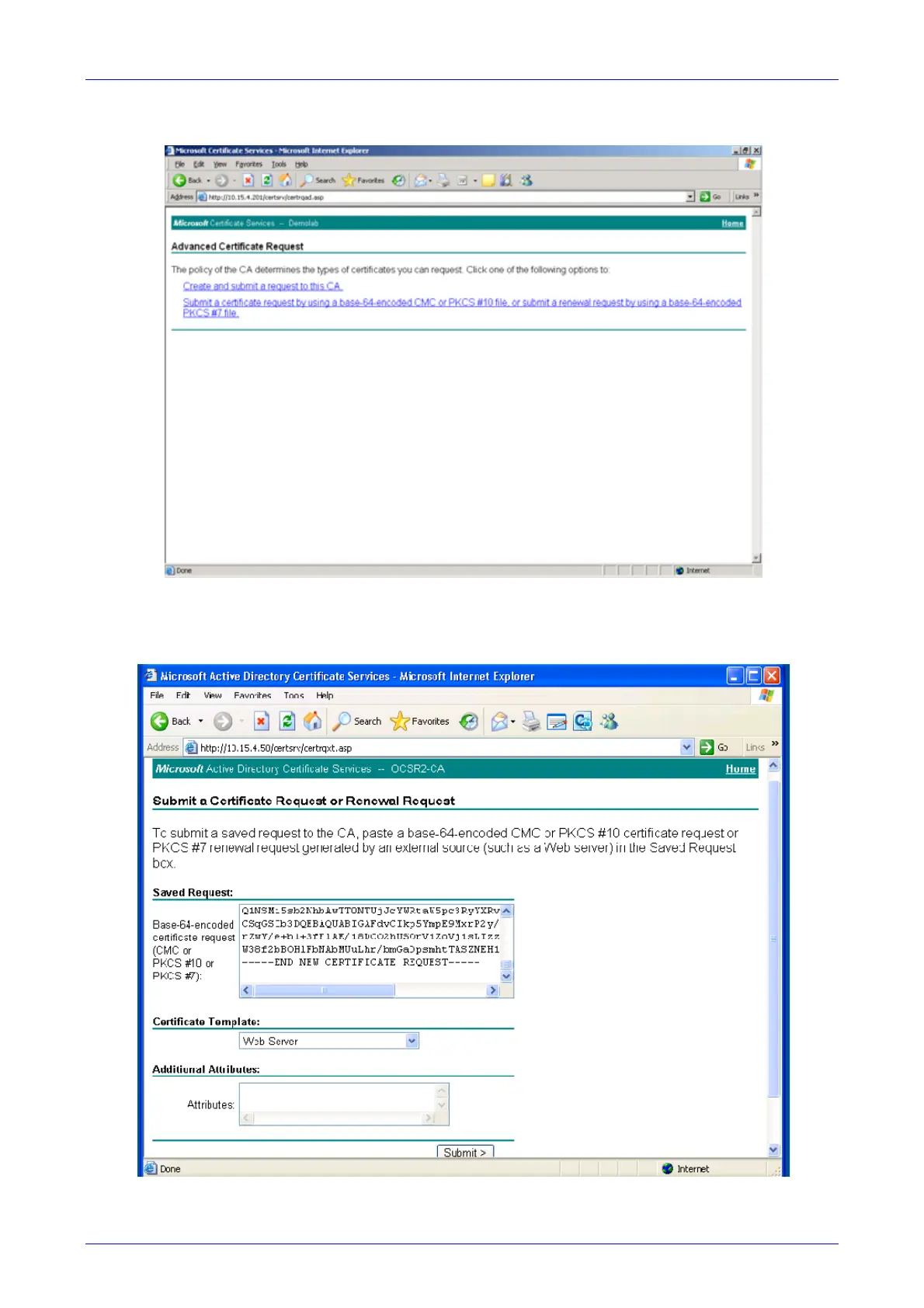 Figure 4-14: Submit a Certificate Request or Renewal Request Page