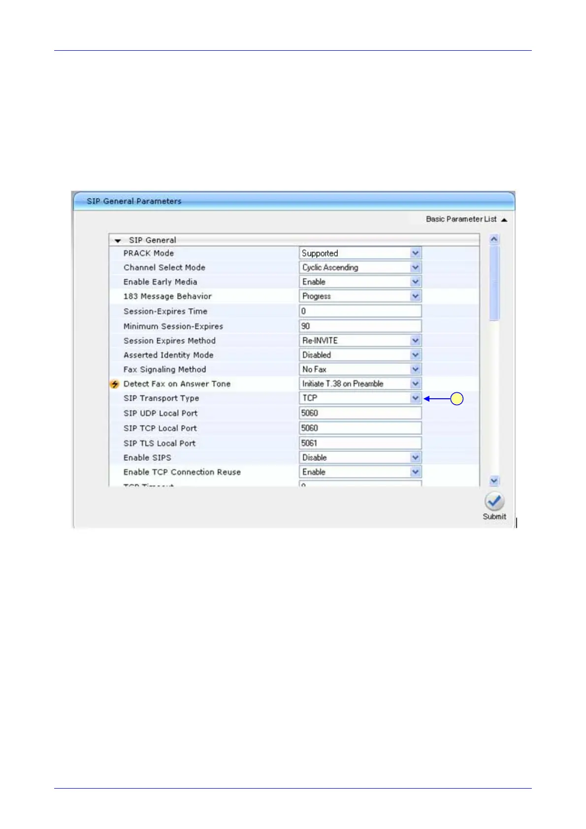 1. Open the 'SIP General Parameters' page (Configuration tab > Protocol Configuration