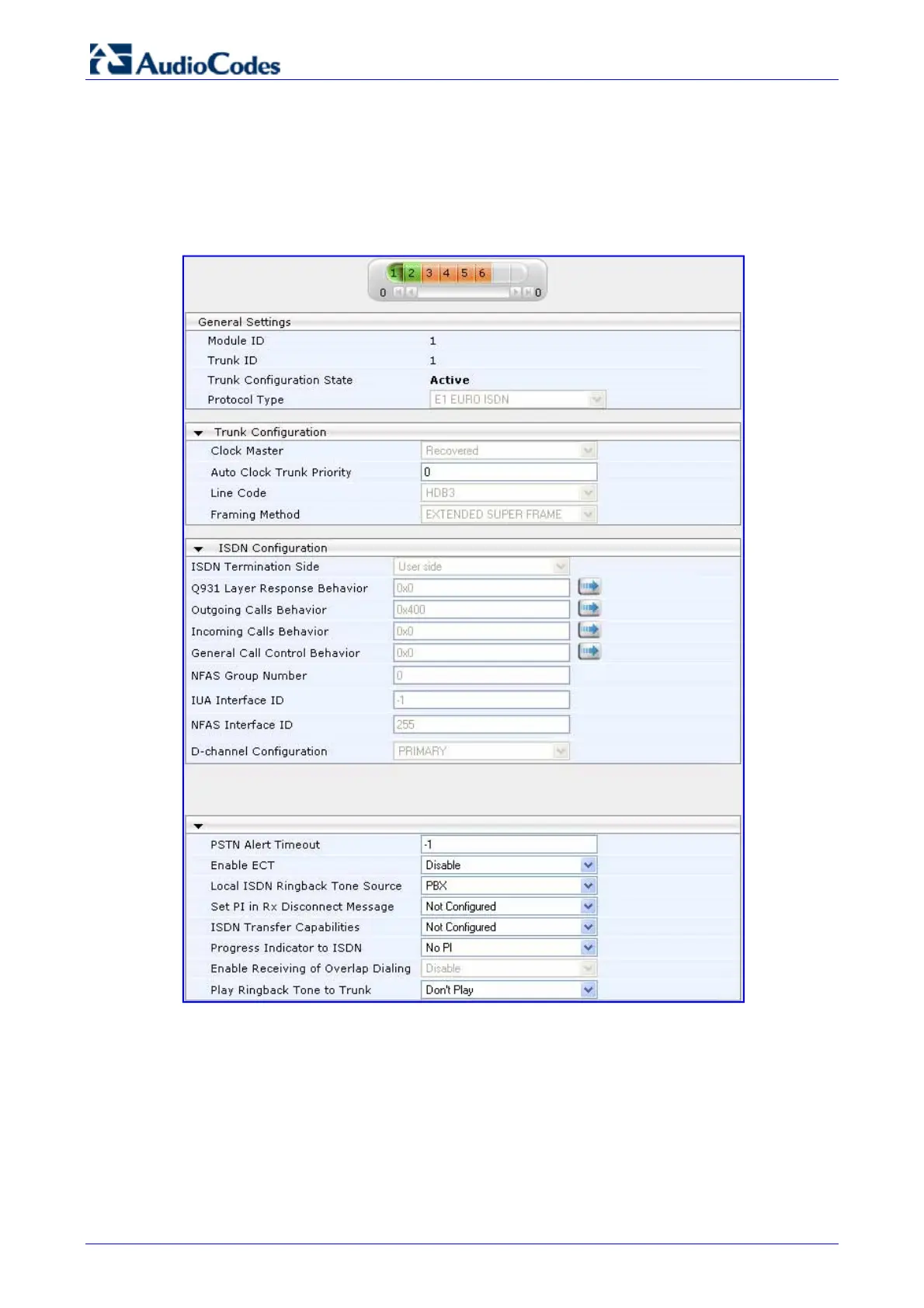 1. Open the ‘Trunk Settings’ page (Configuration tab > PSTN Settings menu > Trunk
