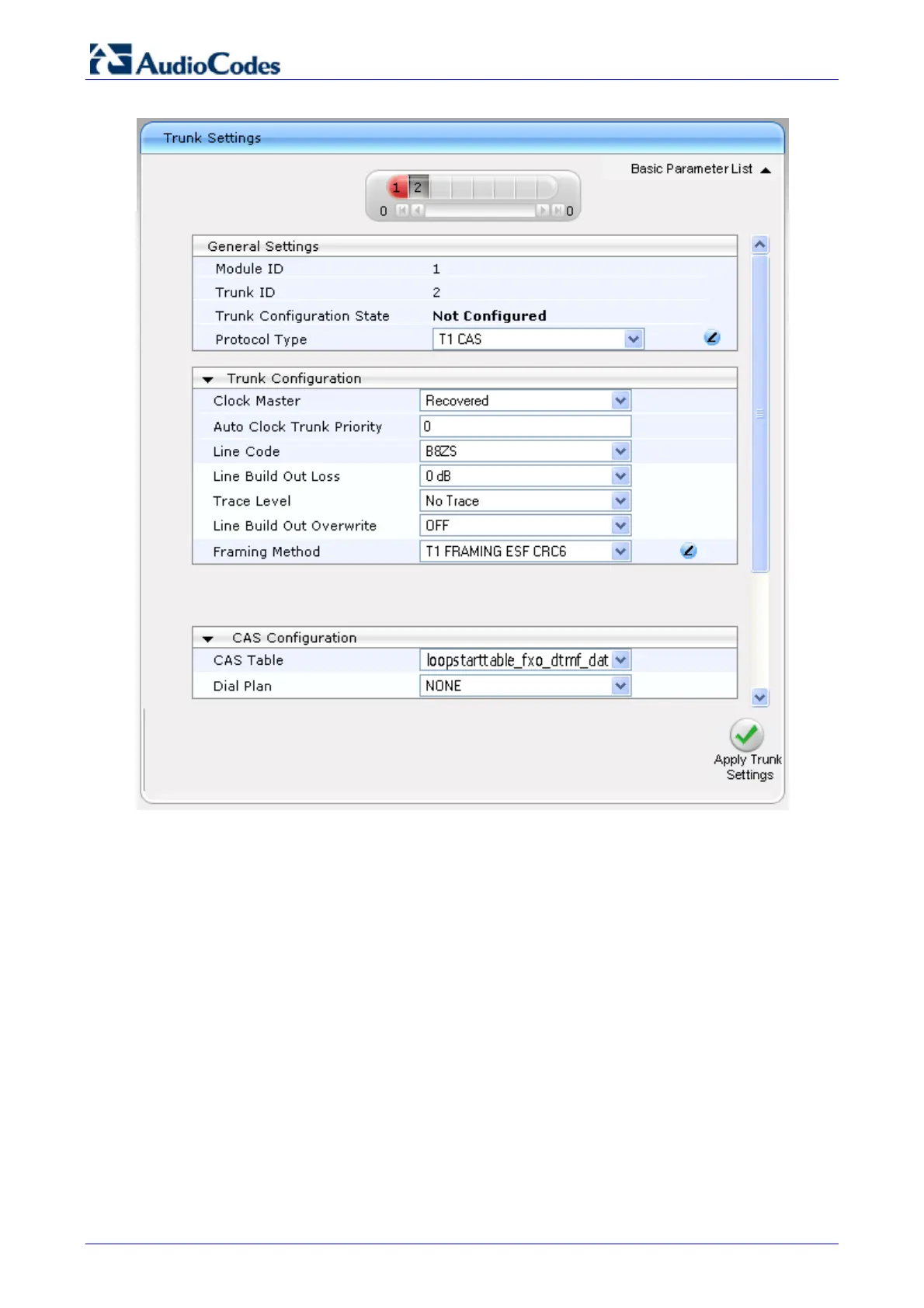 6. Click the Trunk Status icon to which you want to assign the CAS file, and then click Stop