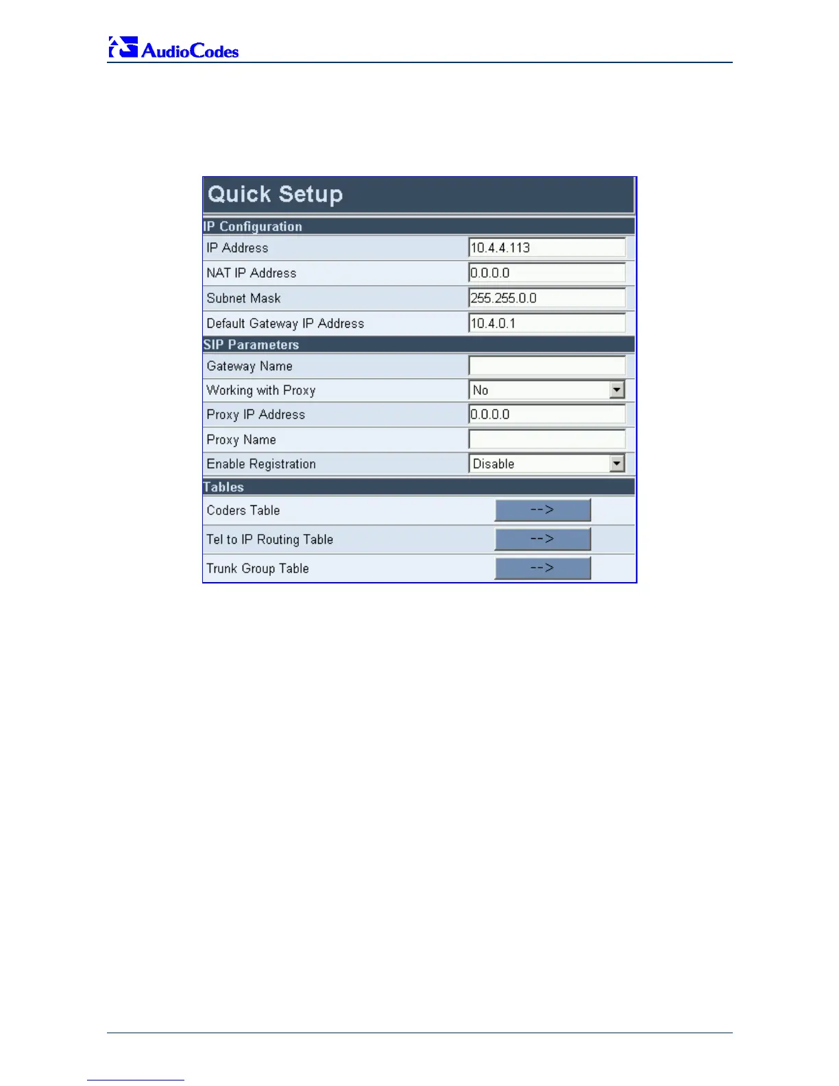 Figure 3-5: Mediant 1000/SIP 'Quick Setup' Screen