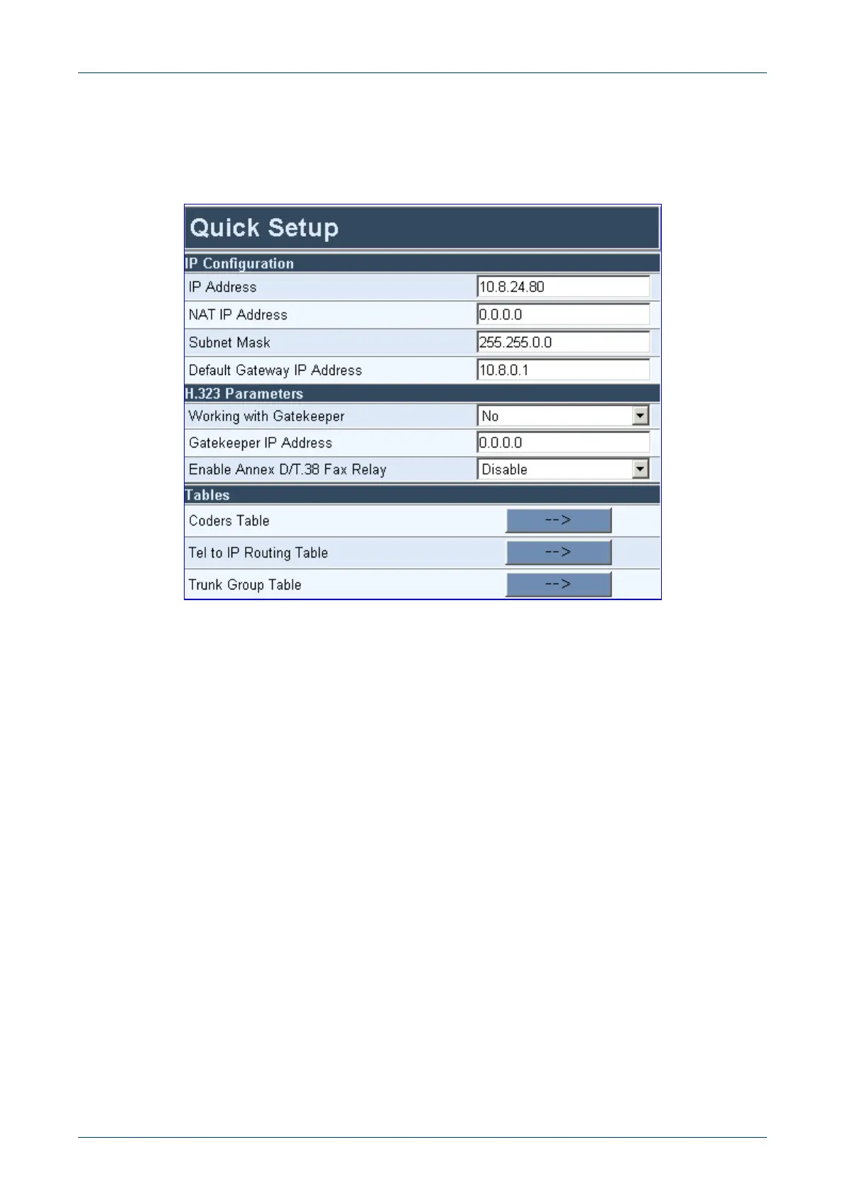 After accessing the Embedded Web Server (refer to Section 3.3 on page 15) the H.323 ‘Quick