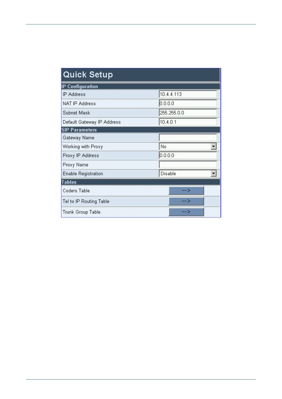 Figure 3-5: Mediant 1000/SIP Quick Setup