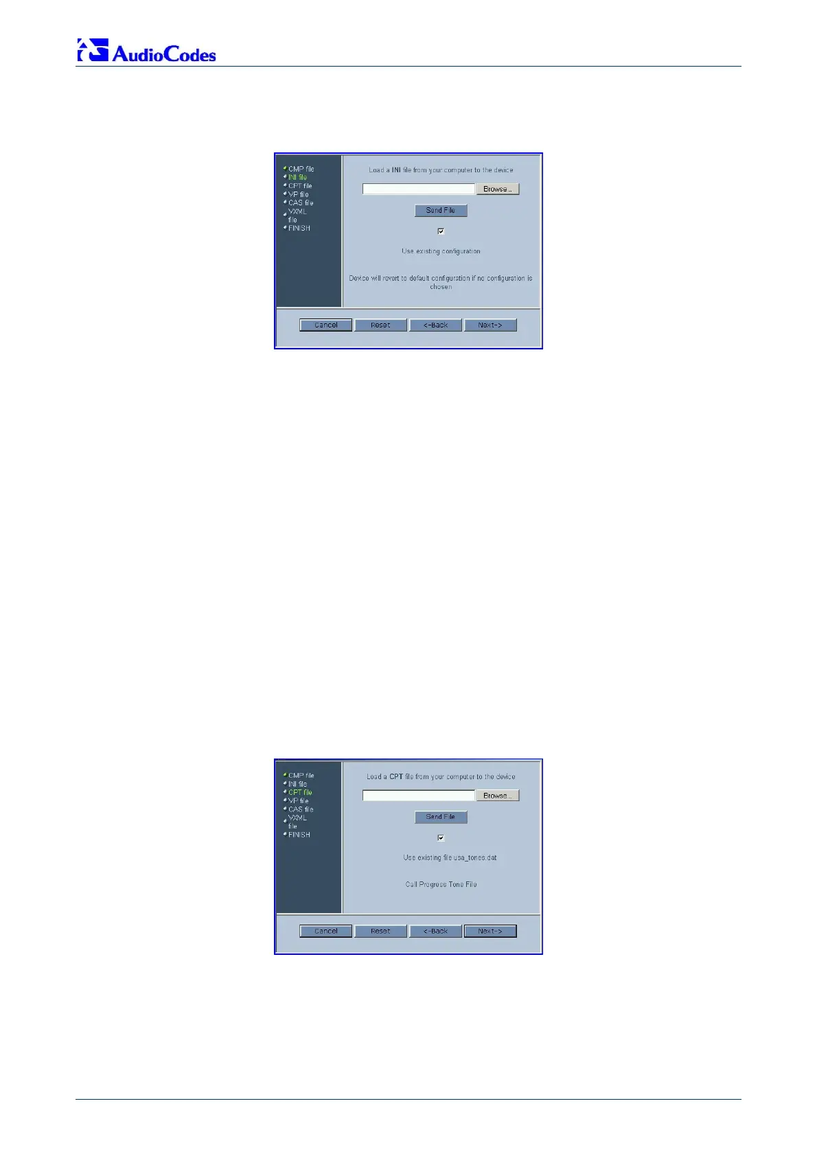 • Click Cancel; the Mediant 1000 resets utilizing the cmp, ini and all other configuration