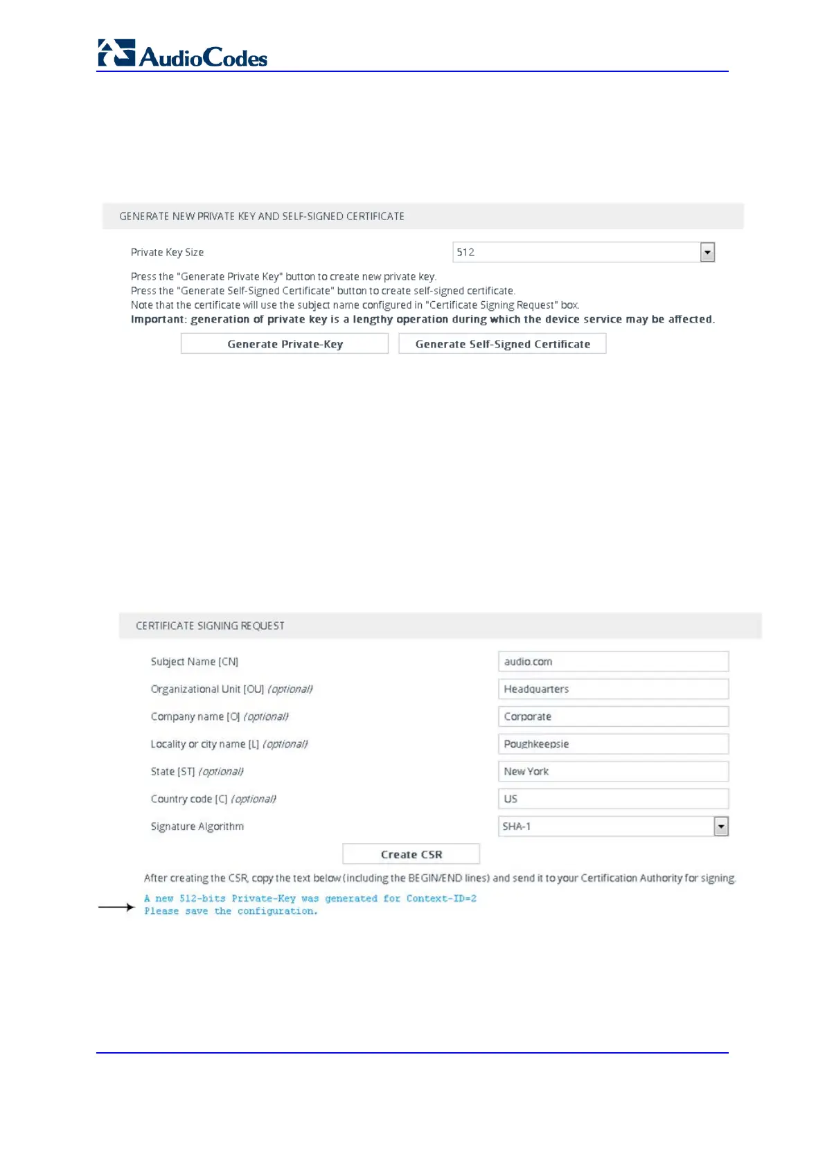 Figure 10-6: Generate new private key and self-signed certificate Group