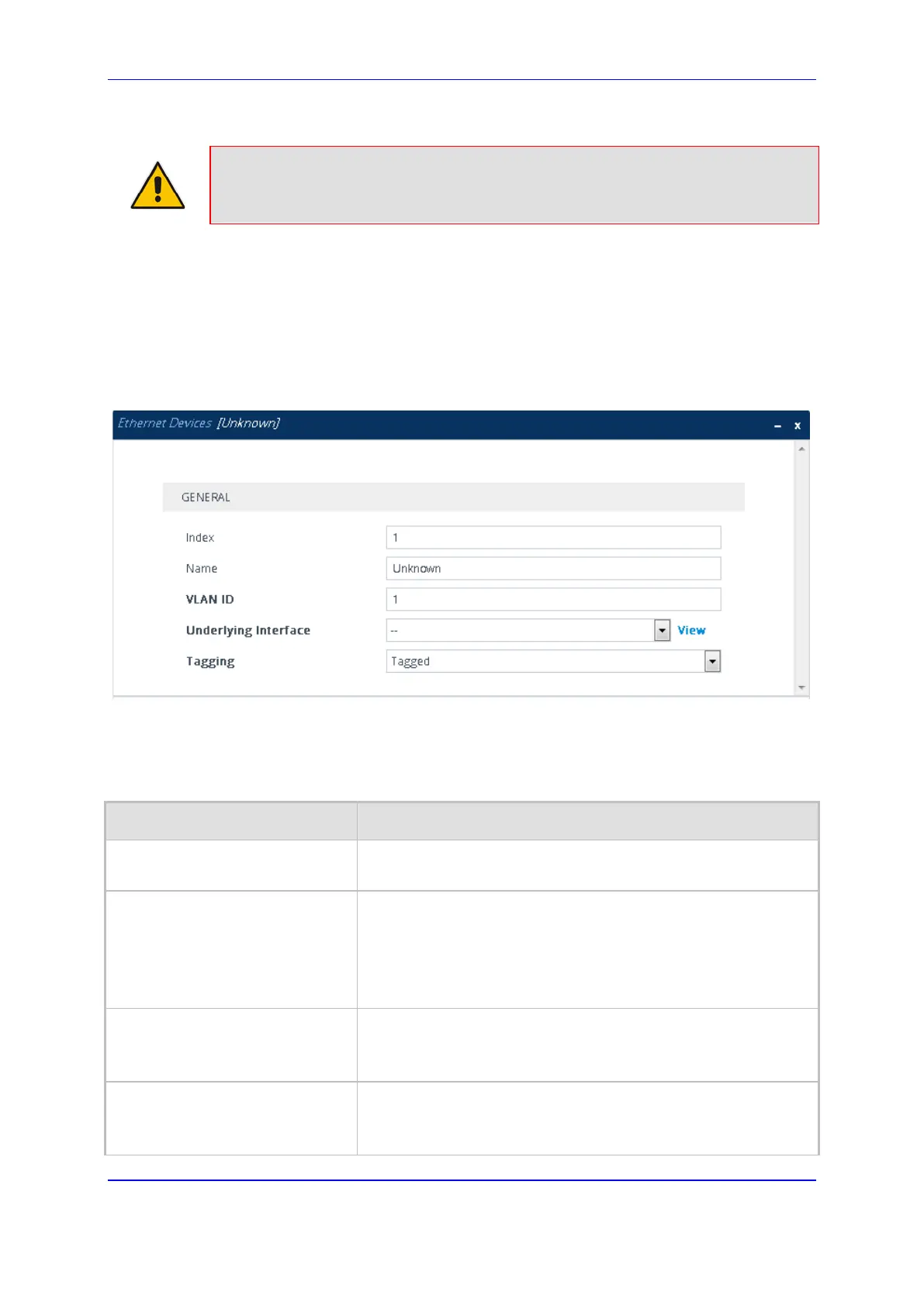 Note: Each Ethernet Device must have a unique VLAN ID.