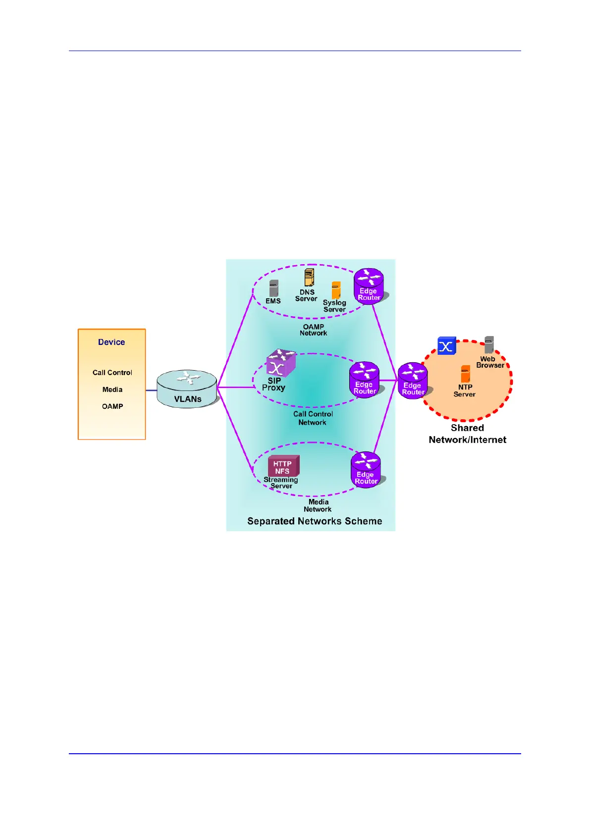 applications. The device is connected to a VLAN-aware switch for directing traffic from and