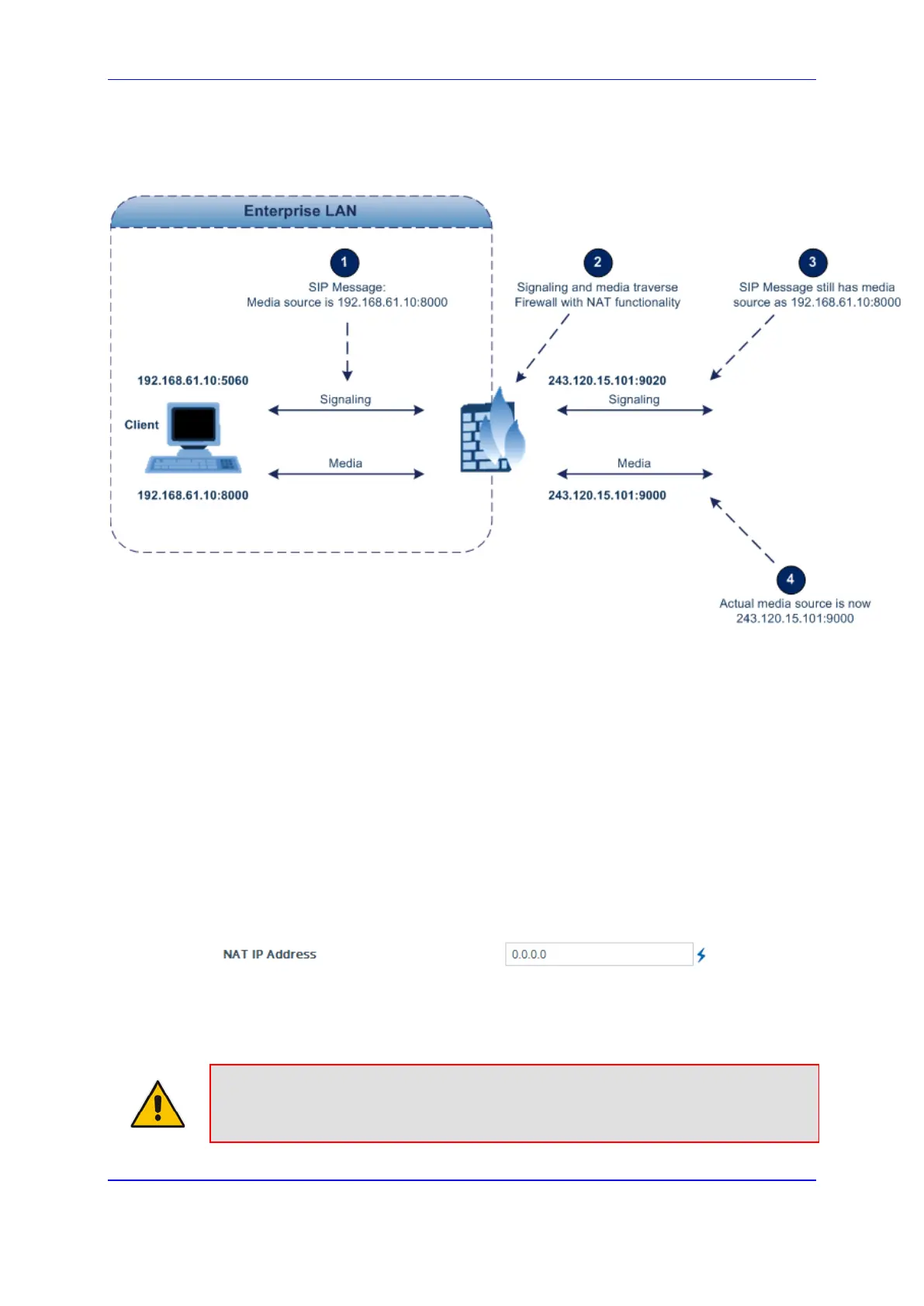 The figure below illustrates the NAT problem faced by SIP networks when the device is