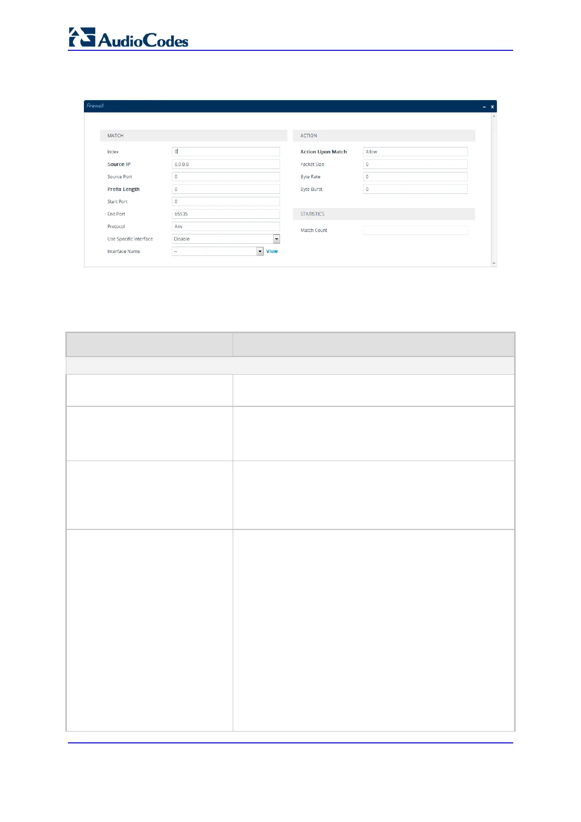 Table 13-1: Firewall Table Parameter Descriptions