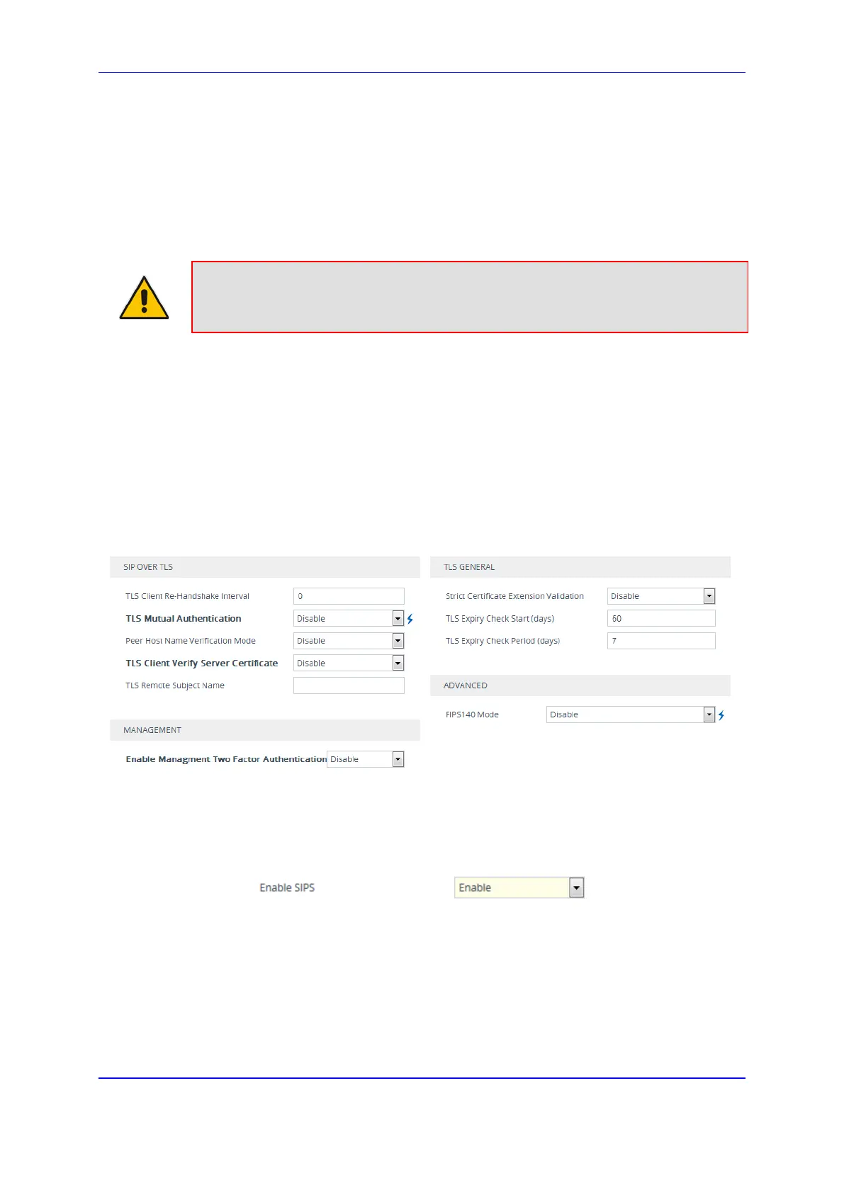 SIPS' (EnableSIPS) parameter to Enable on the Transport Settingspage (Setup menu