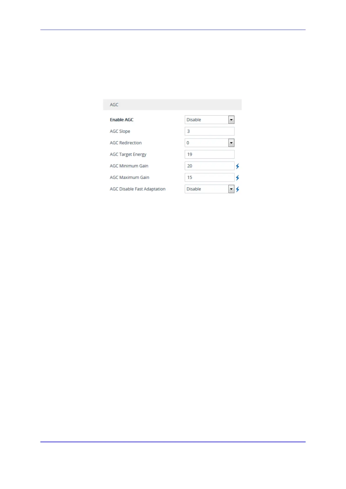 • 'AGC Disable Fast Adaptation' (AGCDisableFastAdaptation) - Enables the AGC