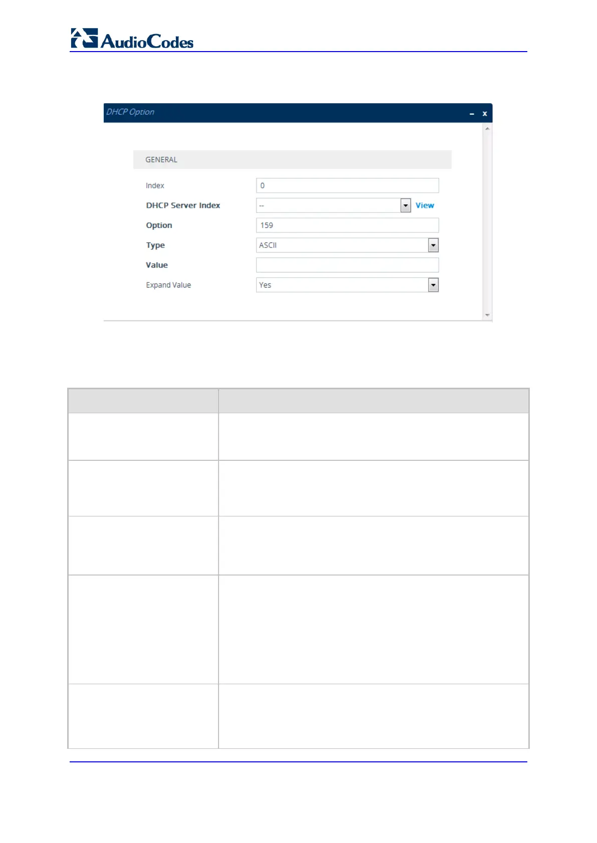 Table 15-4: DHCP Option Table Parameter Descriptions