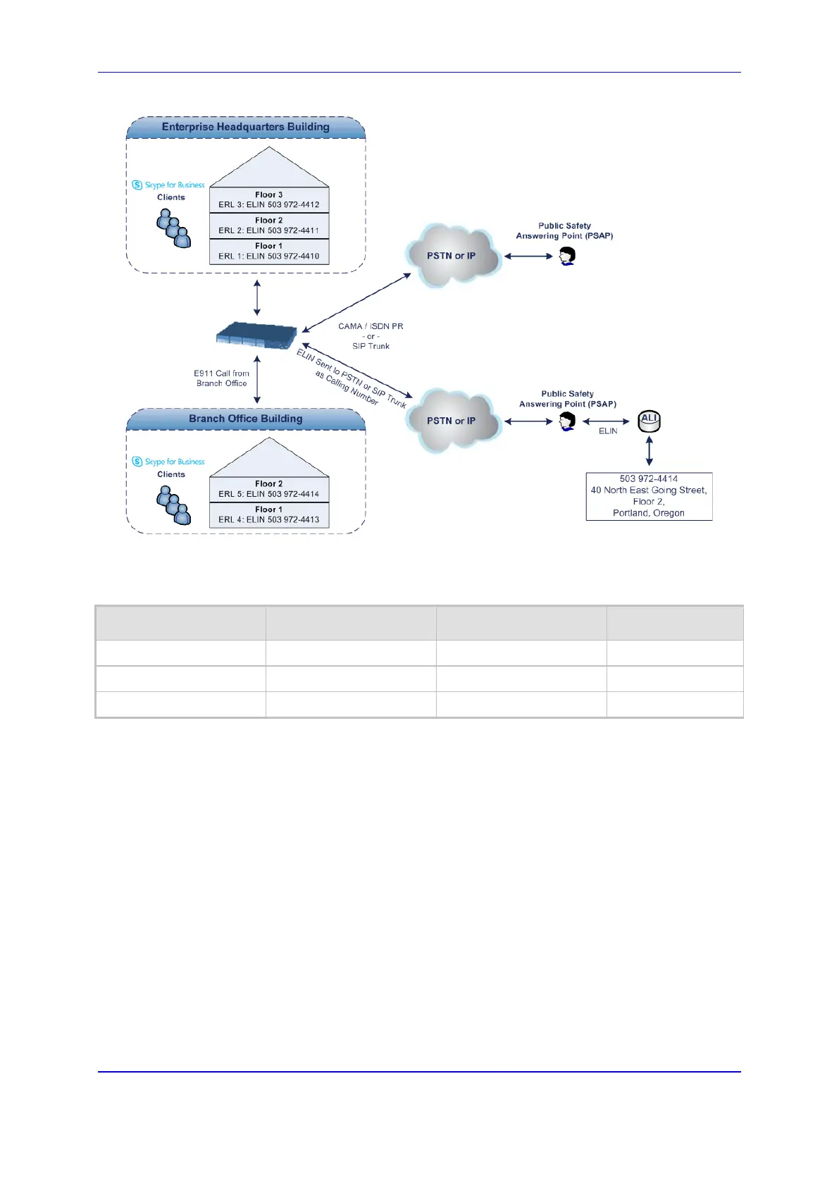 E9-1-1 call to the SIP Trunk or PSTN. When Skype for Business sends the PIDF-LO to the
