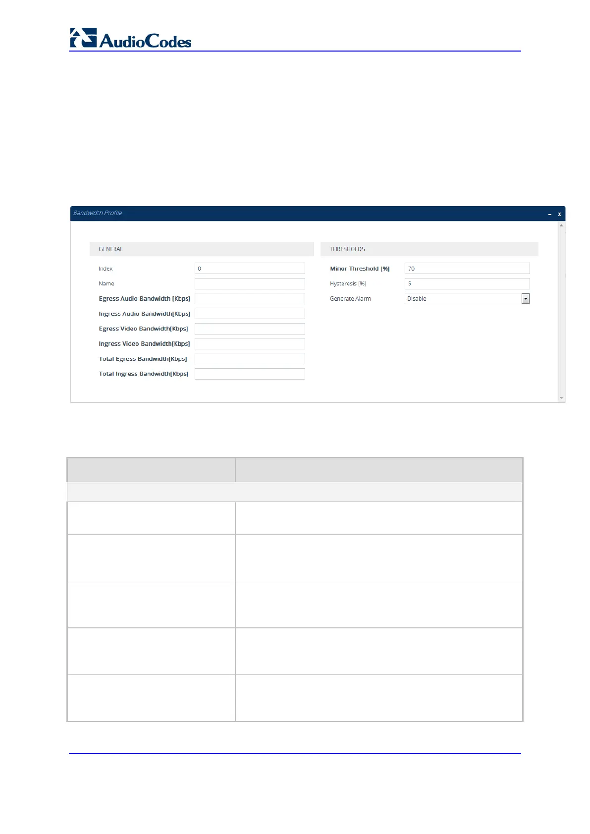 1. Open the Bandwidth Profile table (Setup menu > Signaling & Media tab > Media