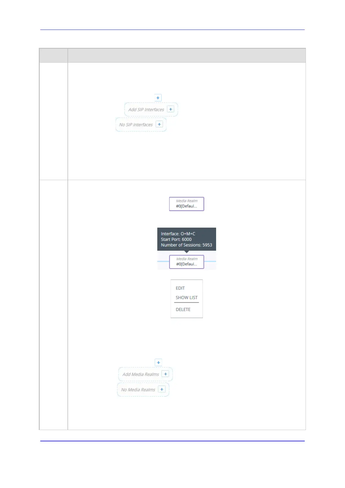 Edit: Opens a dialog box in the Media Realms table to modify the Media Realm.