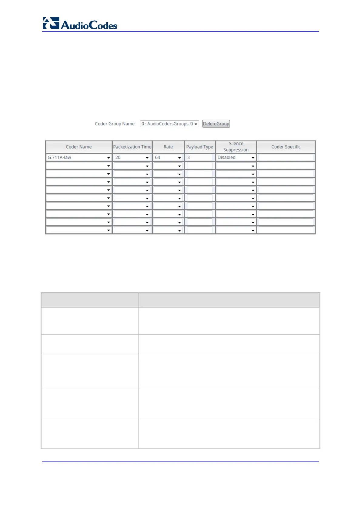 Note: Each coder type (e.g., G.729) can be configured only once
