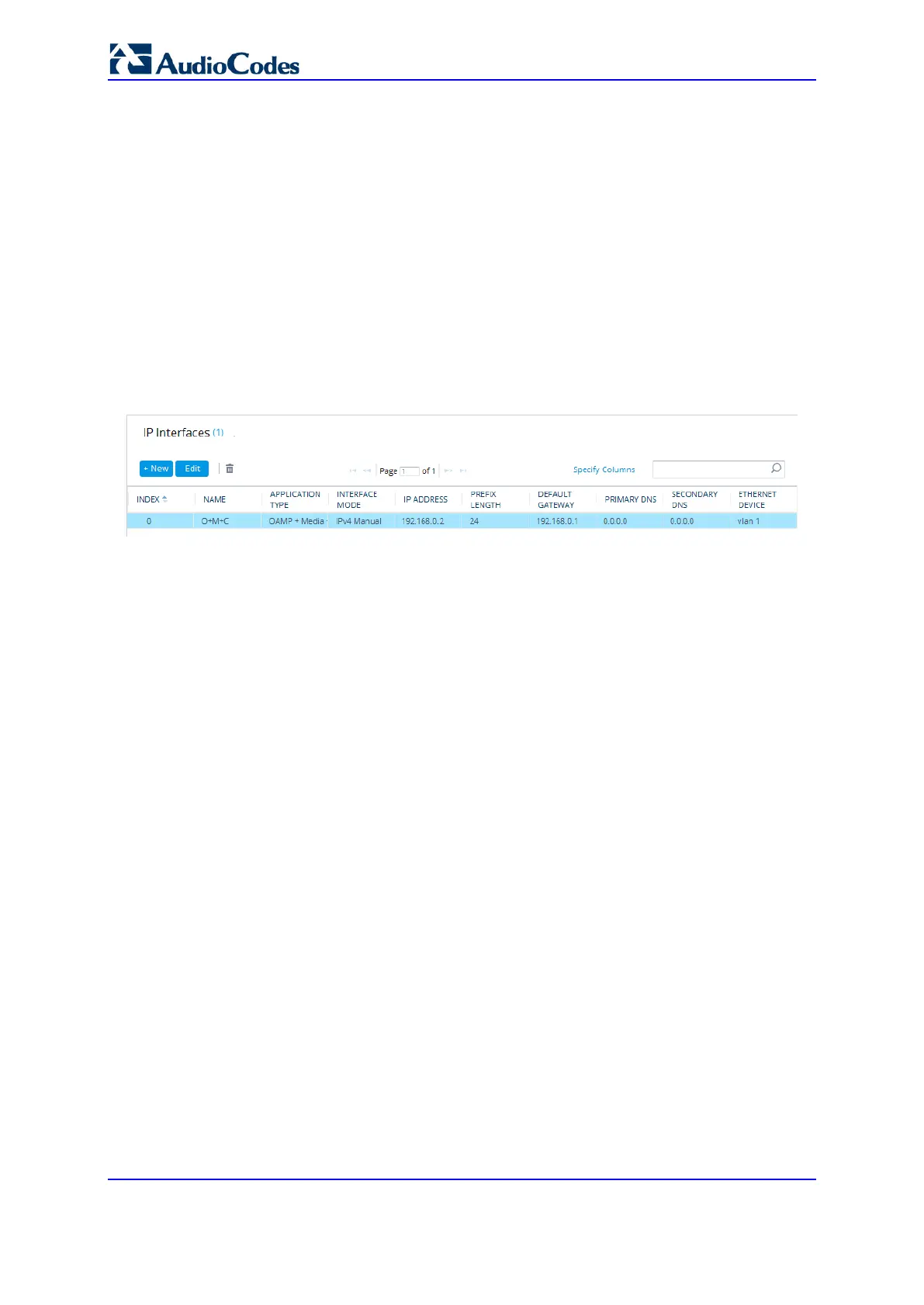 a. Open the IP Interfaces table (see ''Configuring IP Network Interfaces'' on page