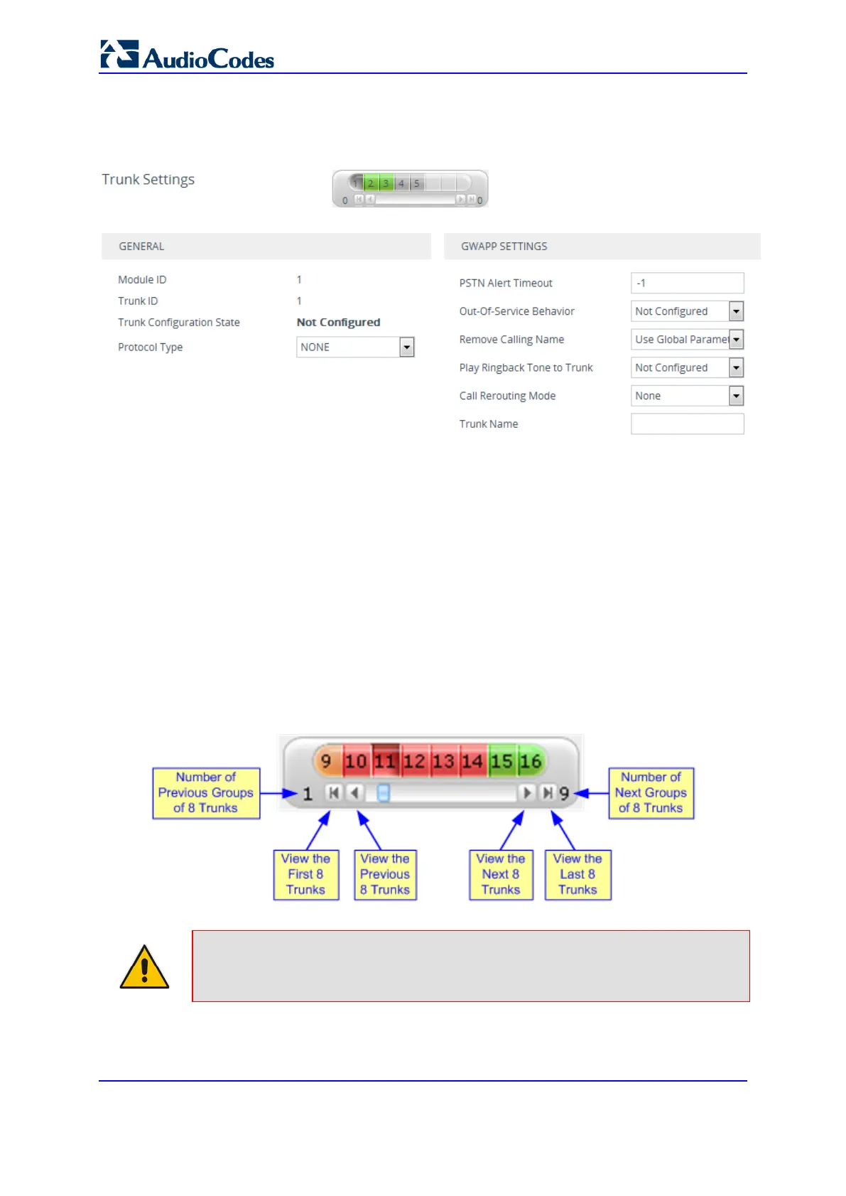 Note: If the Trunk scroll bar displays all available trunks, the scroll bar buttons are