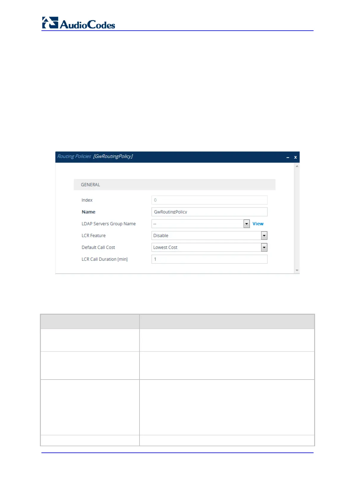 interface. You can also configure it through ini file (GwRoutingPolicy) or CLI (configure voip