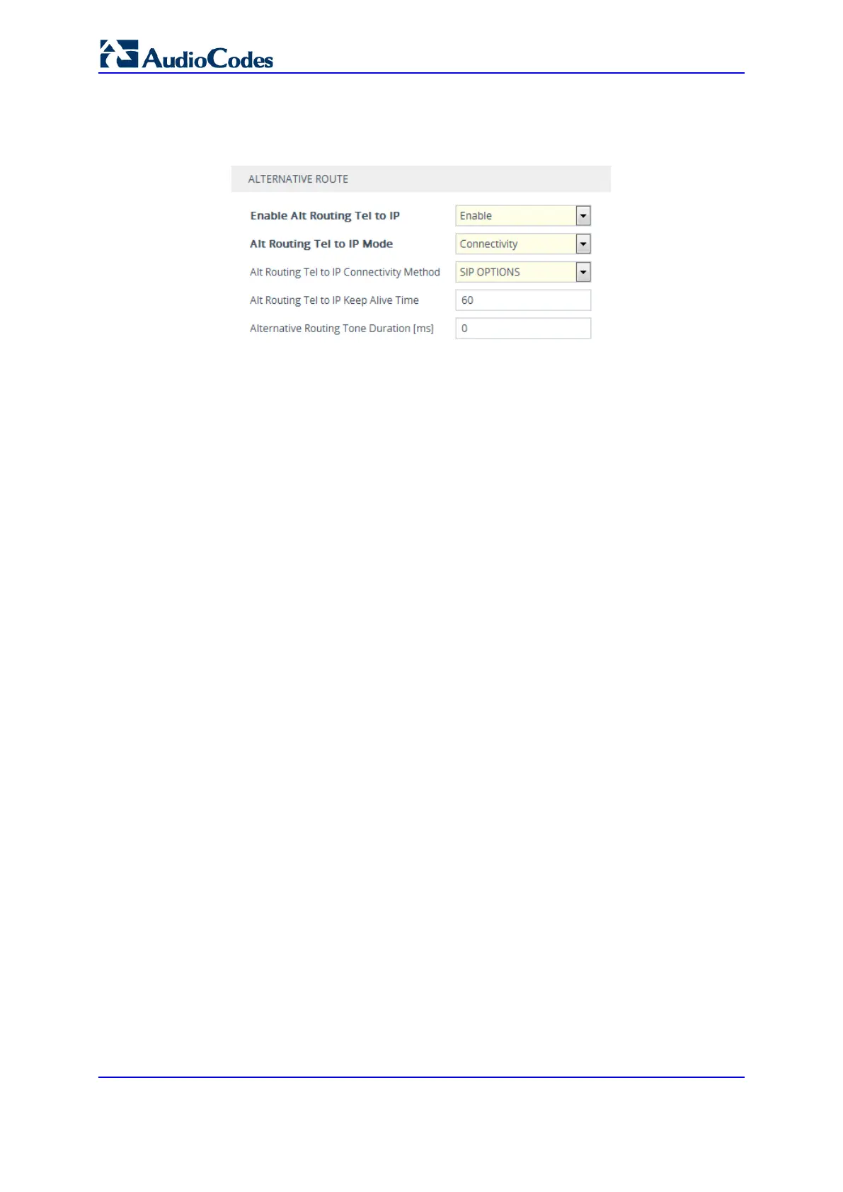 ♦ Connectivity: Alternative routing is performed if a or SIP OPTIONS message