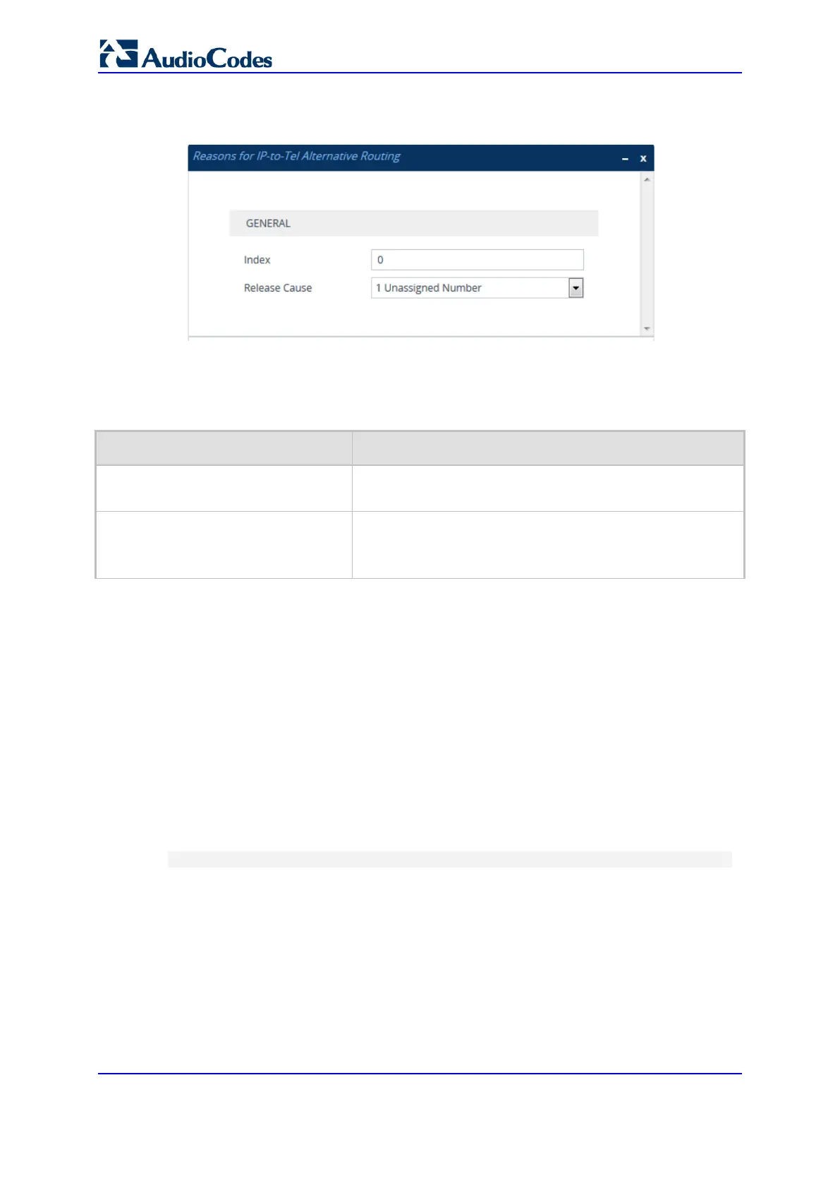 Table 23-9: Reasons for IP-to-Tel Alternative Routing Table Parameter Descriptions