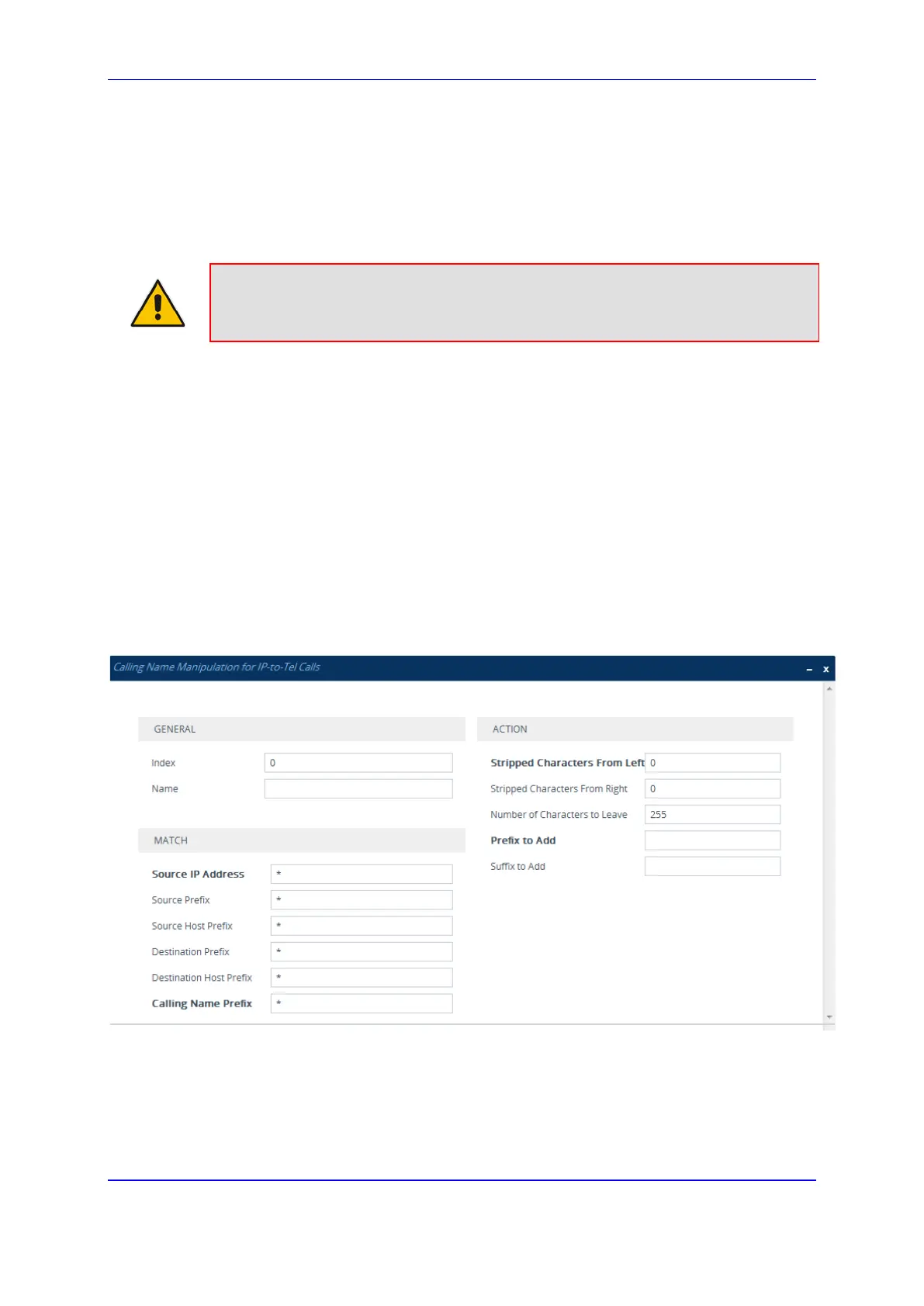 Calling Name Manipulation for IP-to-Tel Calls table: ini file (CallingNameMapIp2Tel) or
