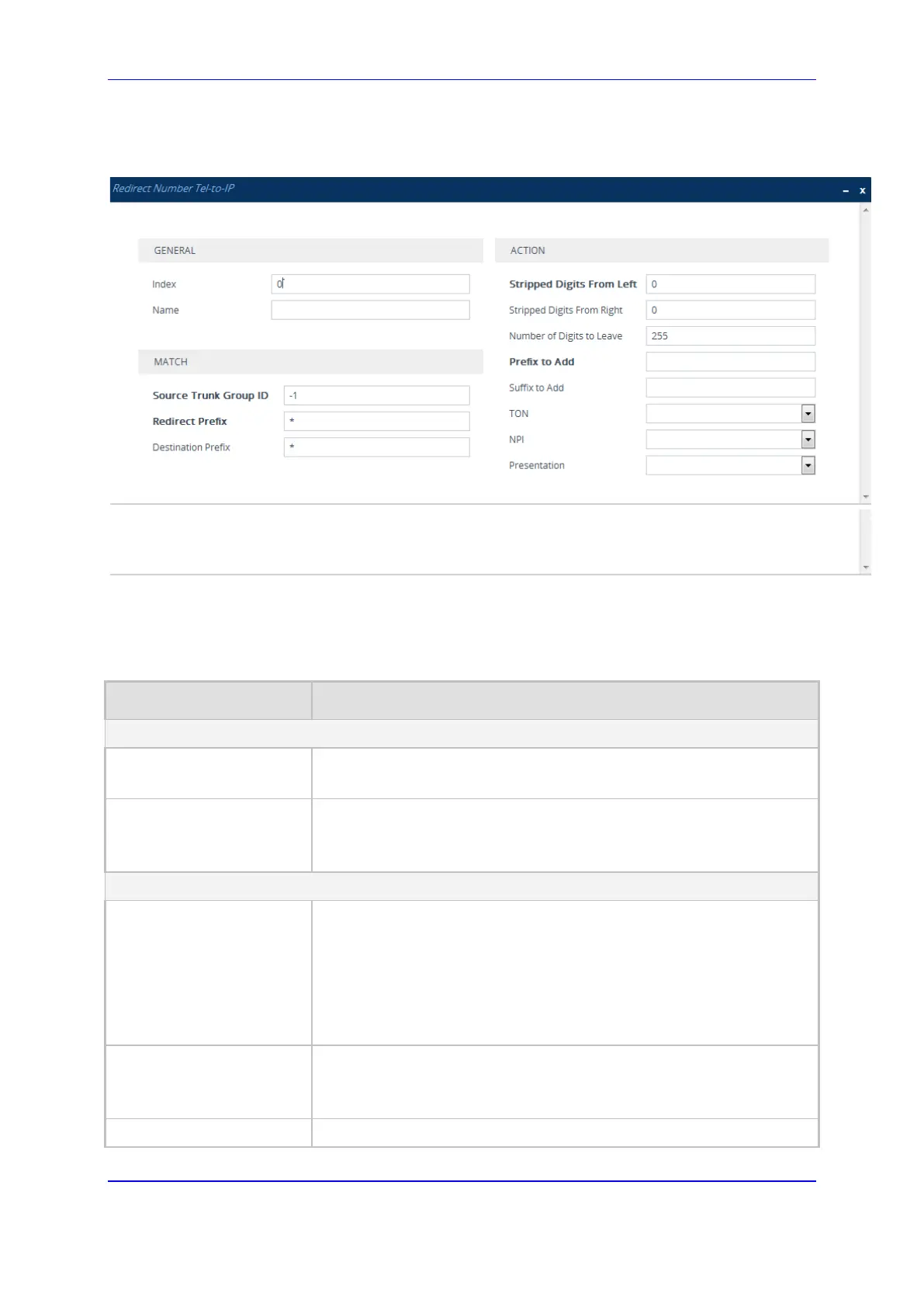 Table 24-5: Redirect Number Manipulation Tables Parameter Description
